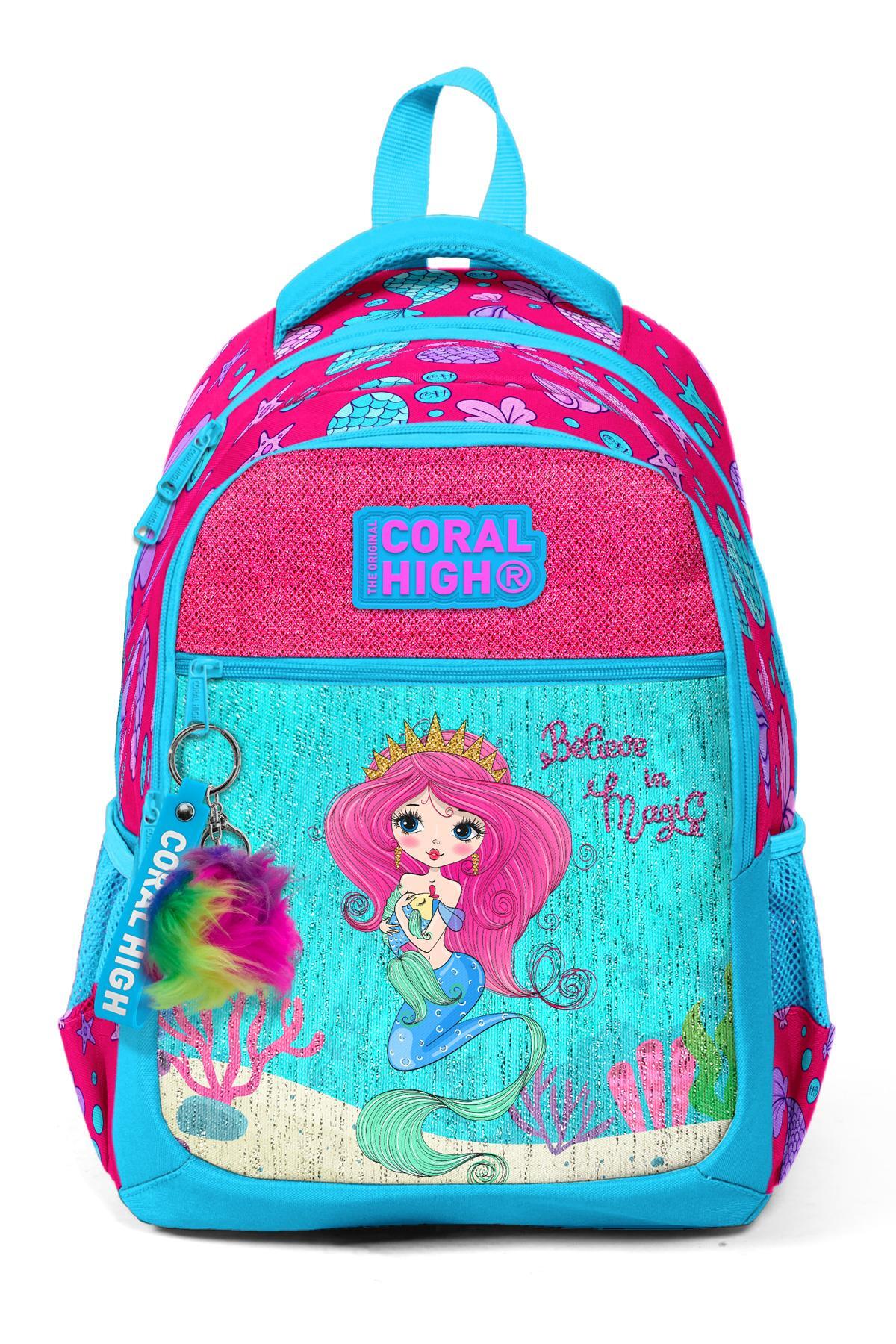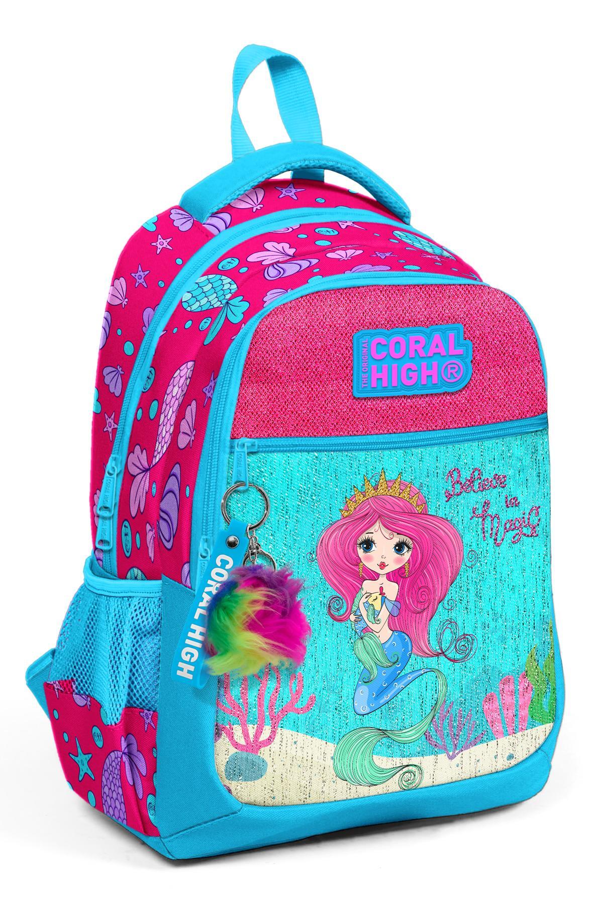 Coral High Kids Mavi Pembe Deniz Kızı Desenli Üç Bölmeli Okul Sırt Çantası 23476