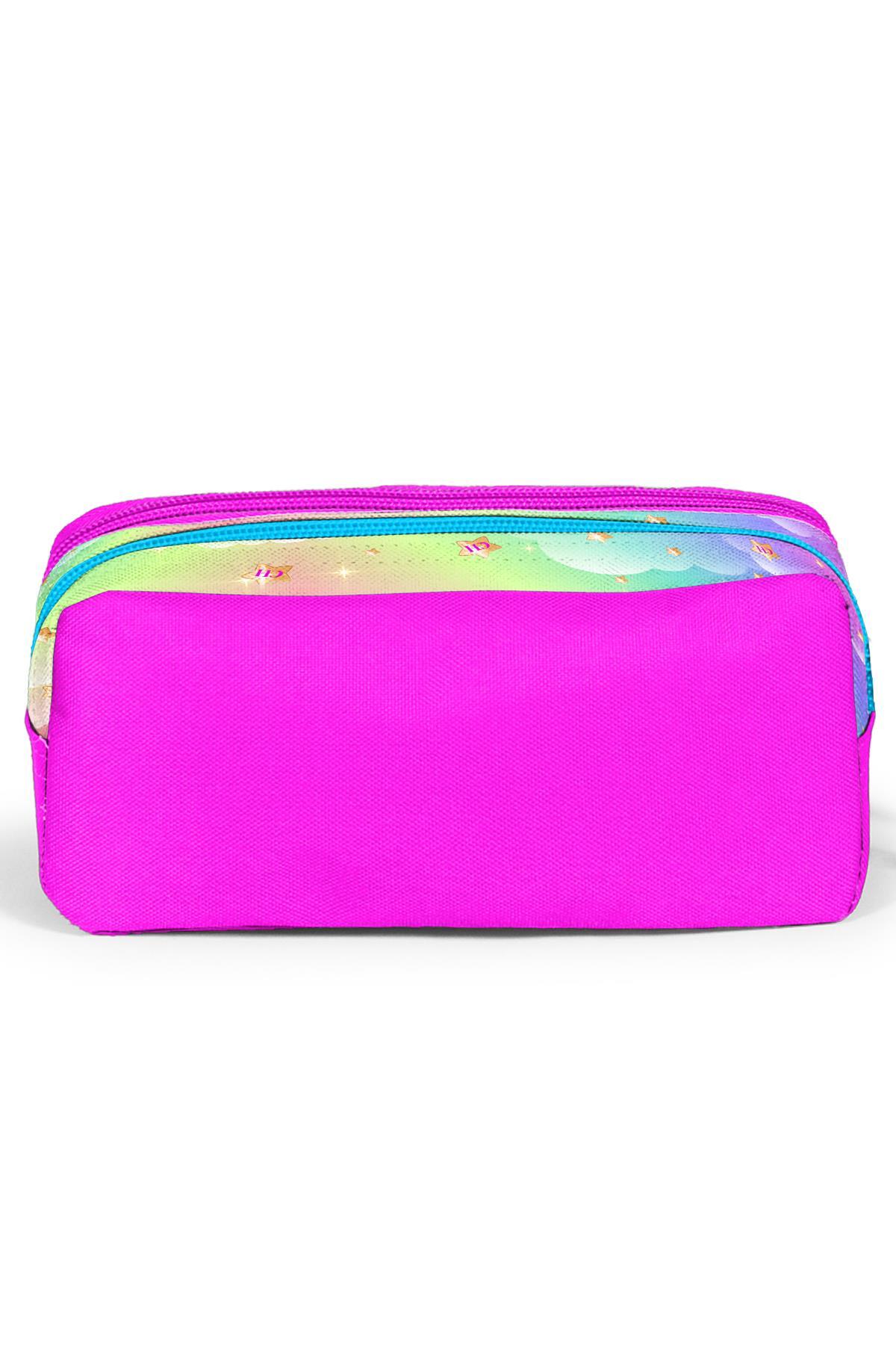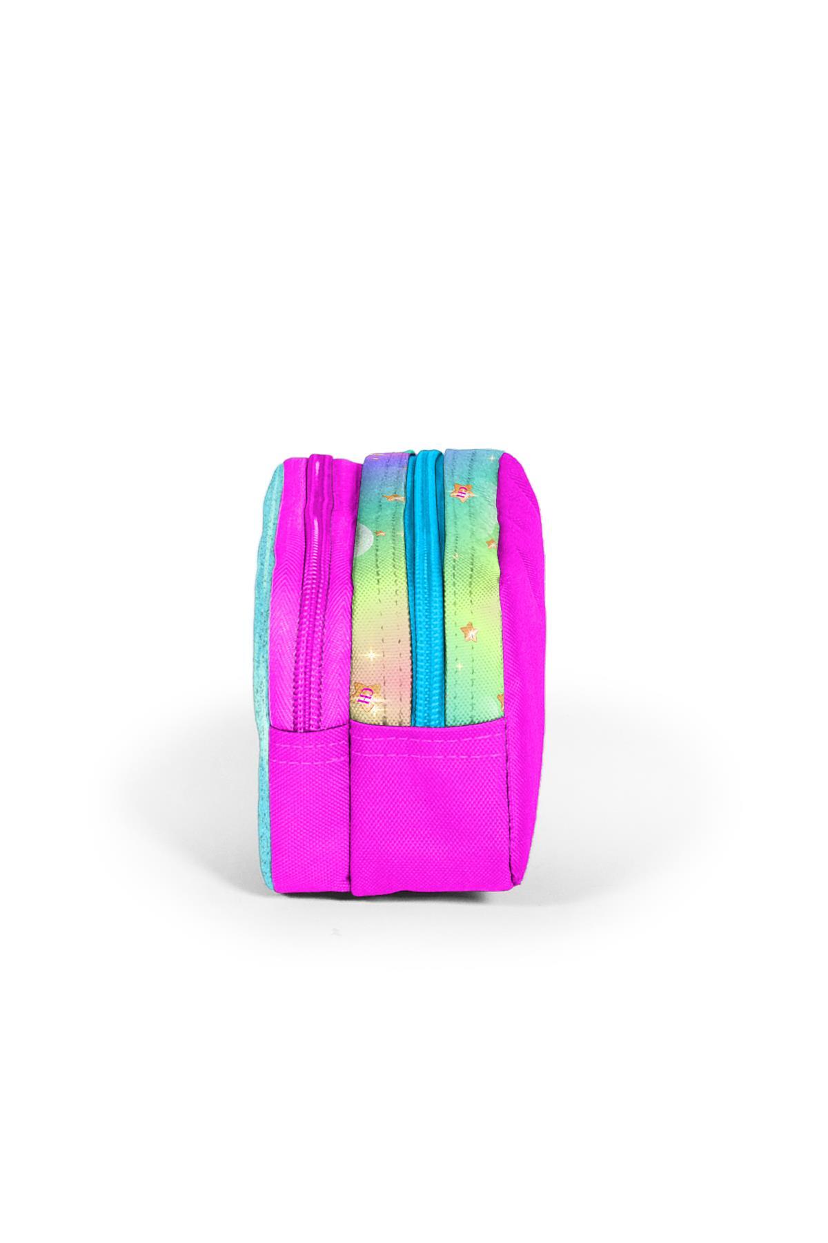 Coral High Kids Mavi Pembe Zürafa Desenli İki Bölmeli Kalem Çantası 12052