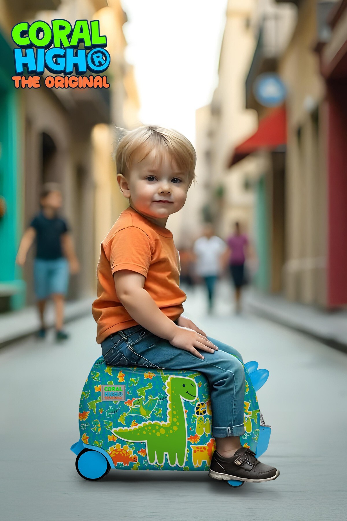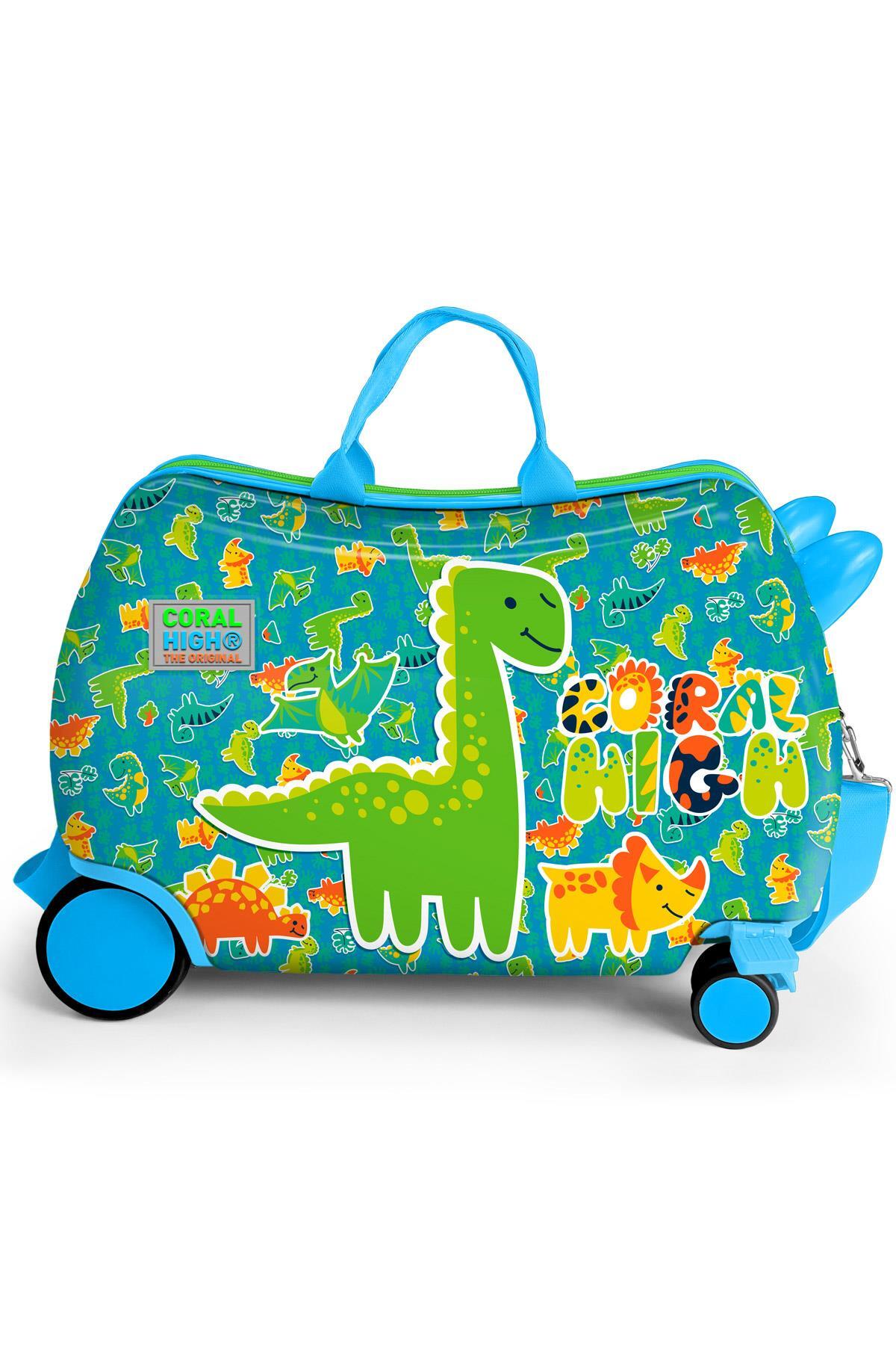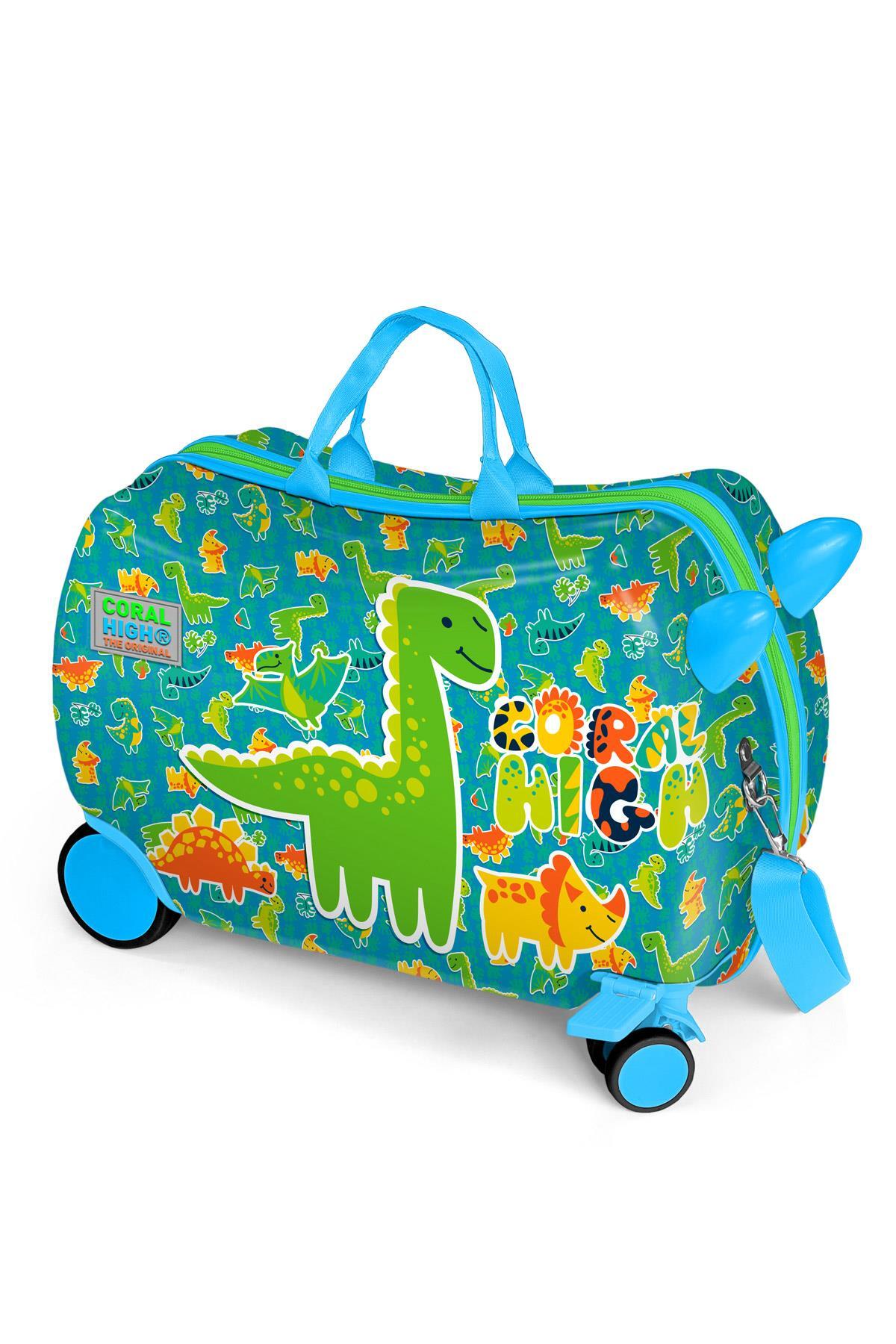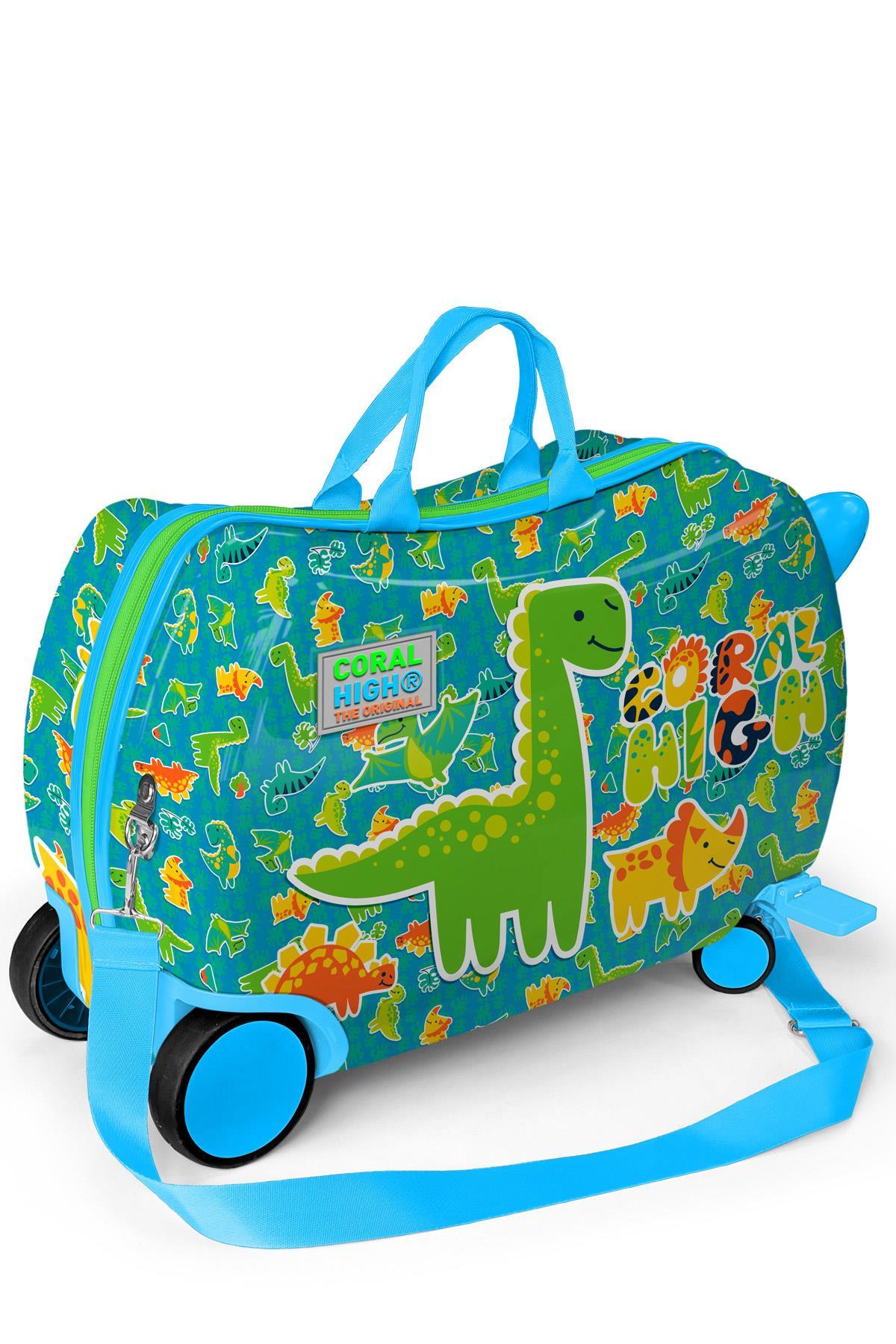 Coral High Kids Mavi Yeşil Dinozor Desenli Otur-Çek Çocuk Valizi 16361