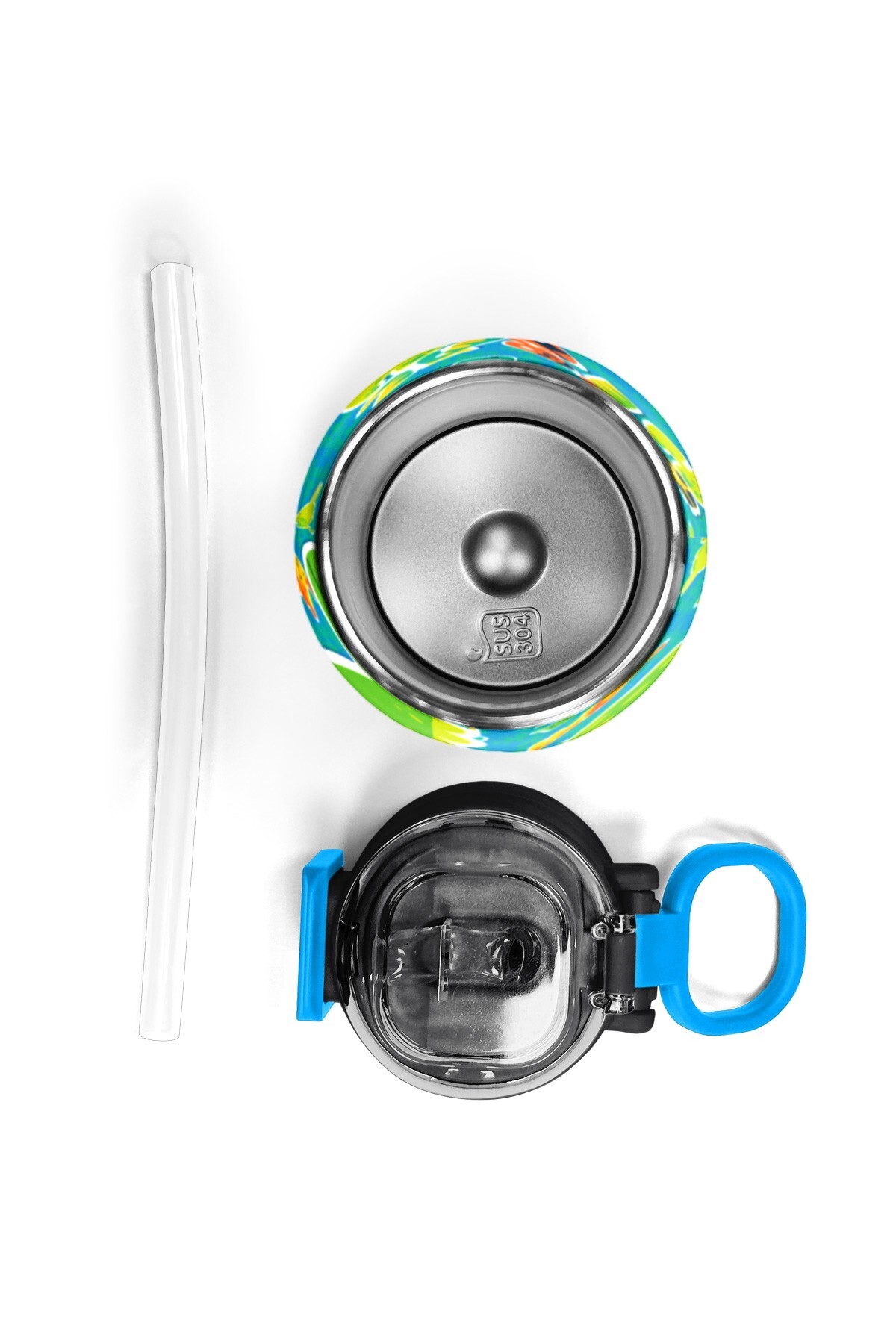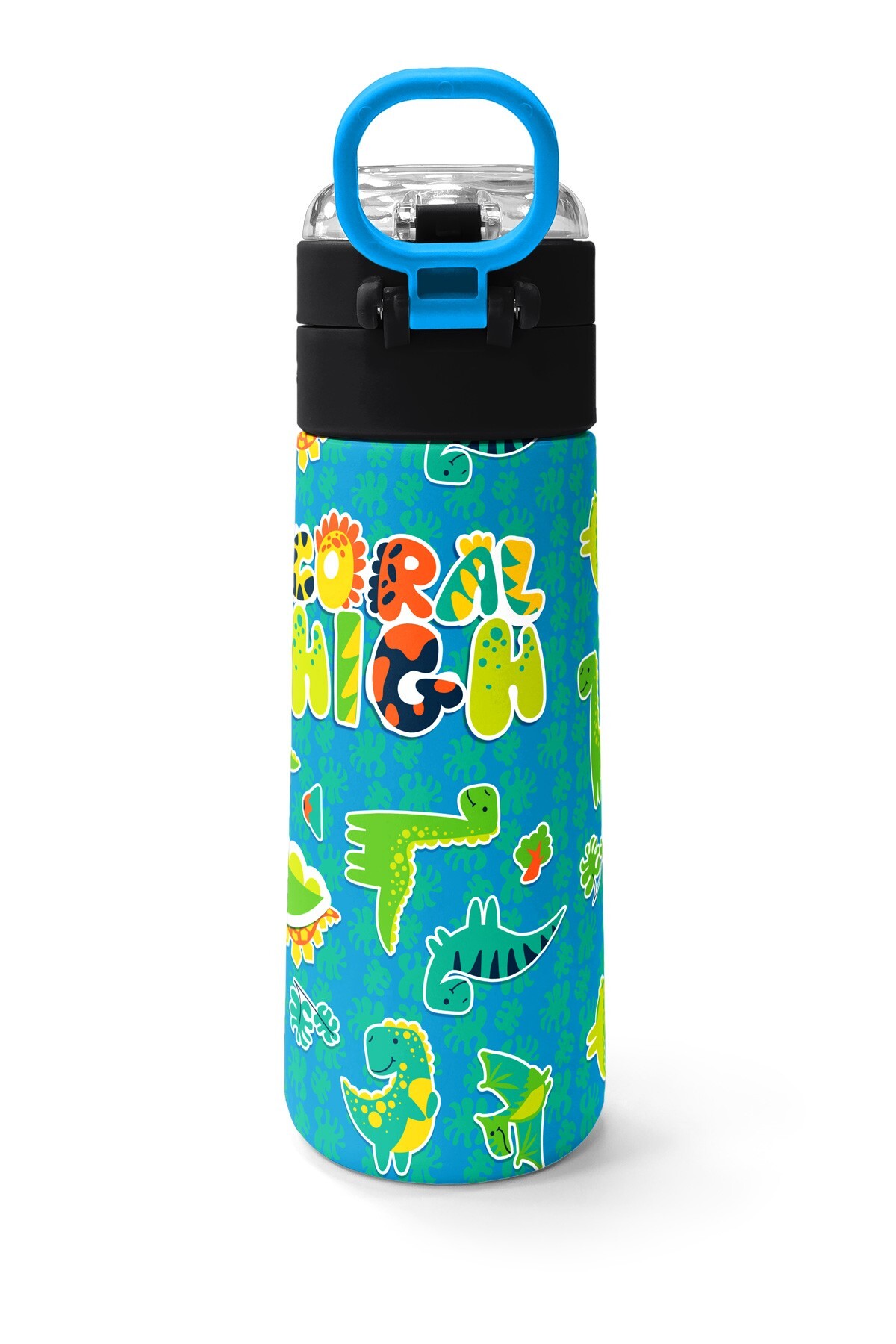 Coral High Kids Mavi Yeşil Dinozor Desenli Pipetli ve Direkt İçim Çelik Termos 500 ml 31798