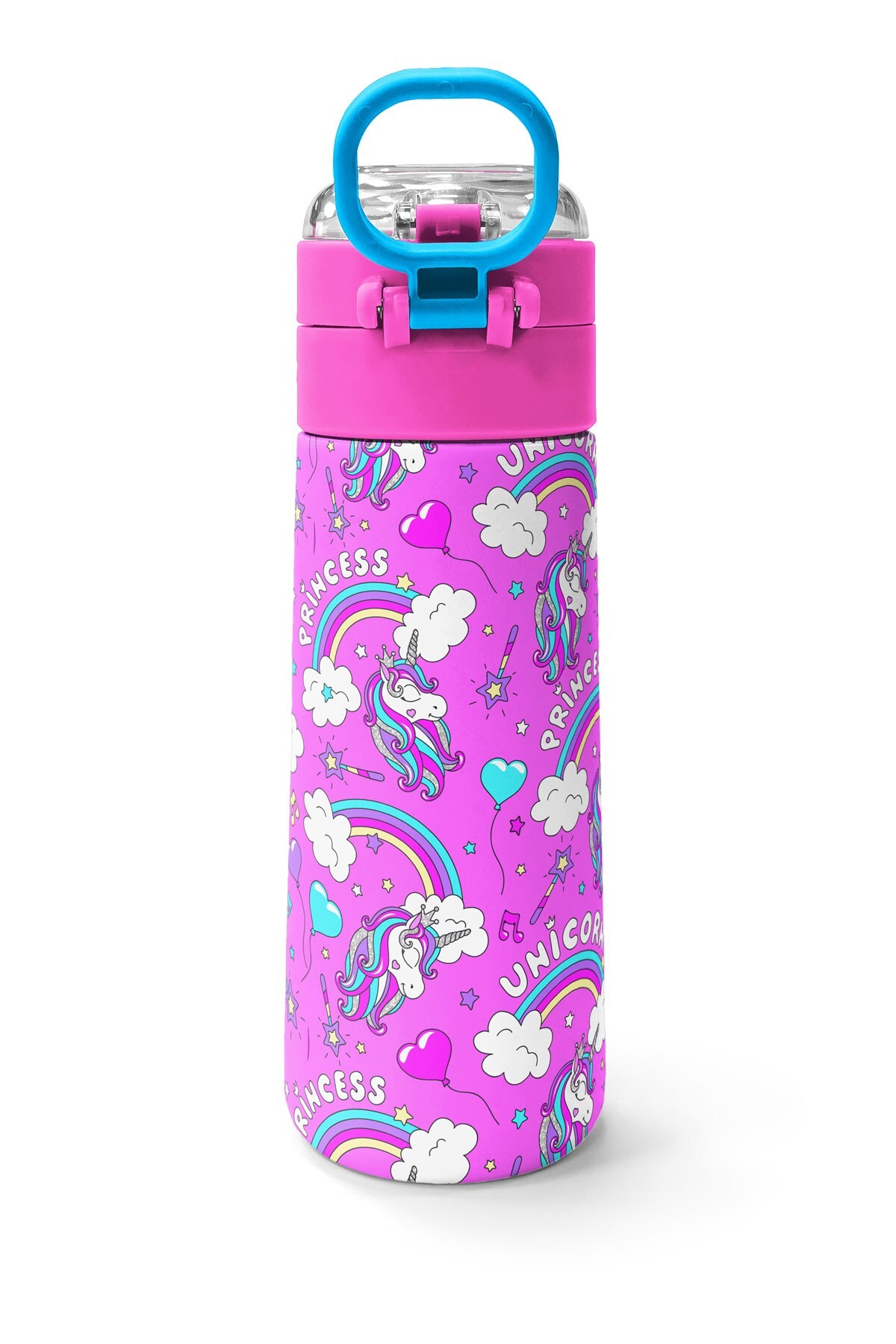 Coral High Kids Mor Açık Pembe Unicorn Desenli Pipetli ve Direkt İçim Çelik Termos 500 ml 31978
