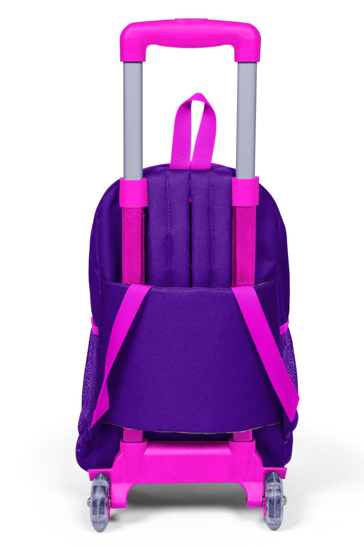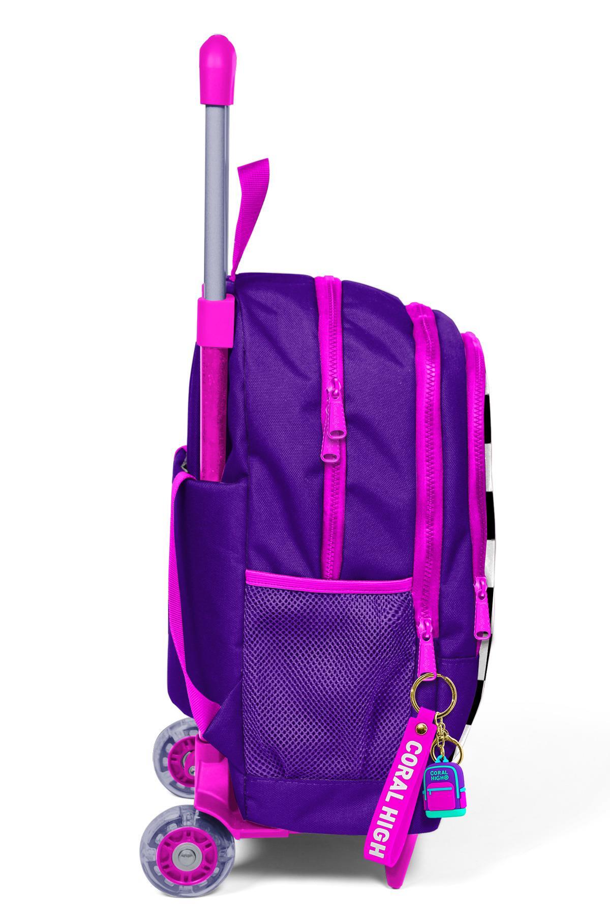 Coral High Kids Mor Dama Desenli Üç Bölmeli Çekçekli Okul Sırt Çantası 23902