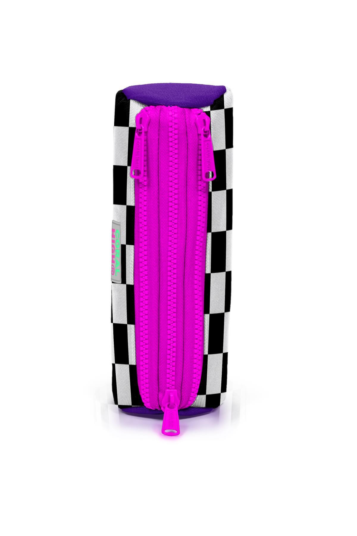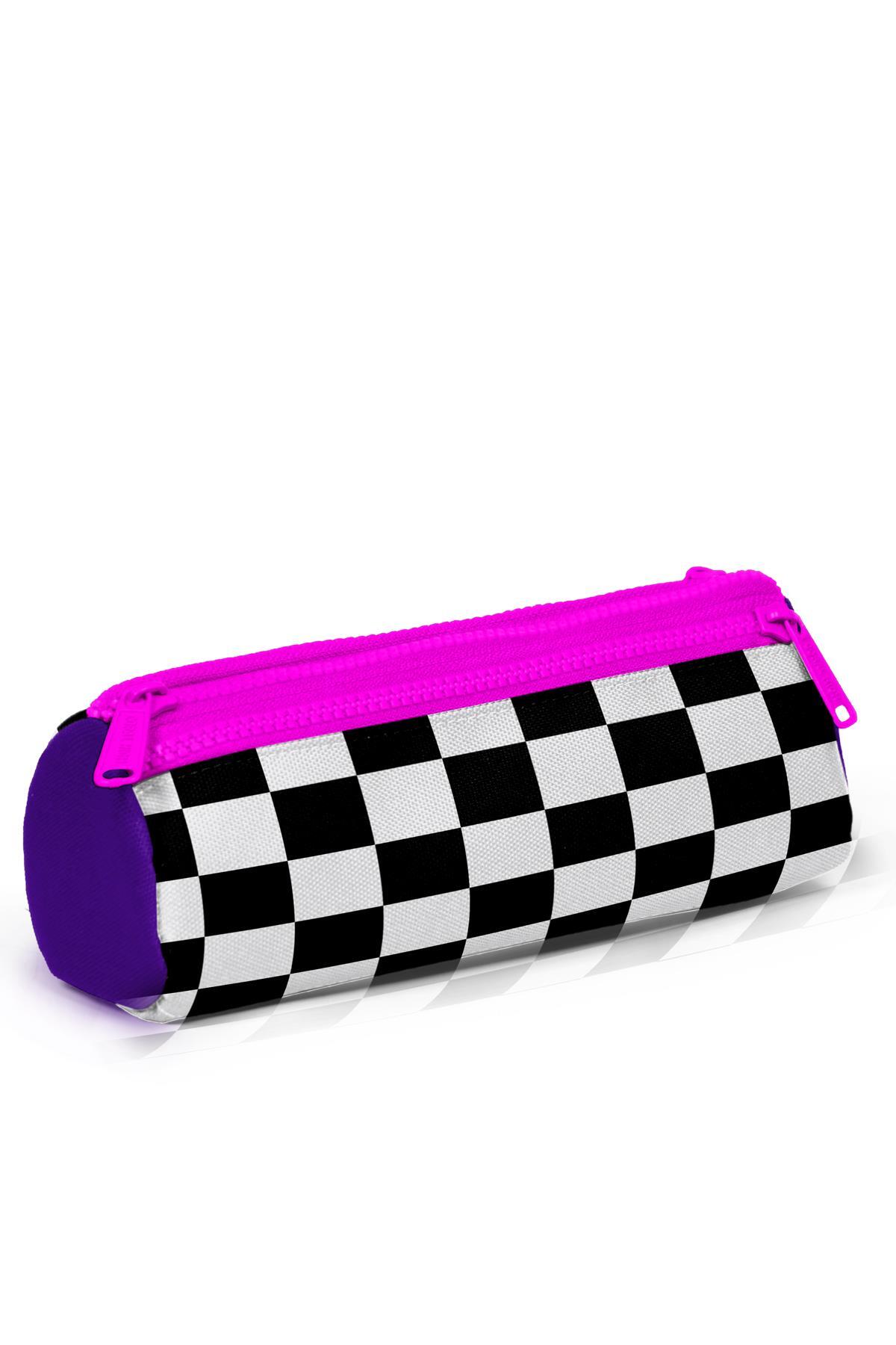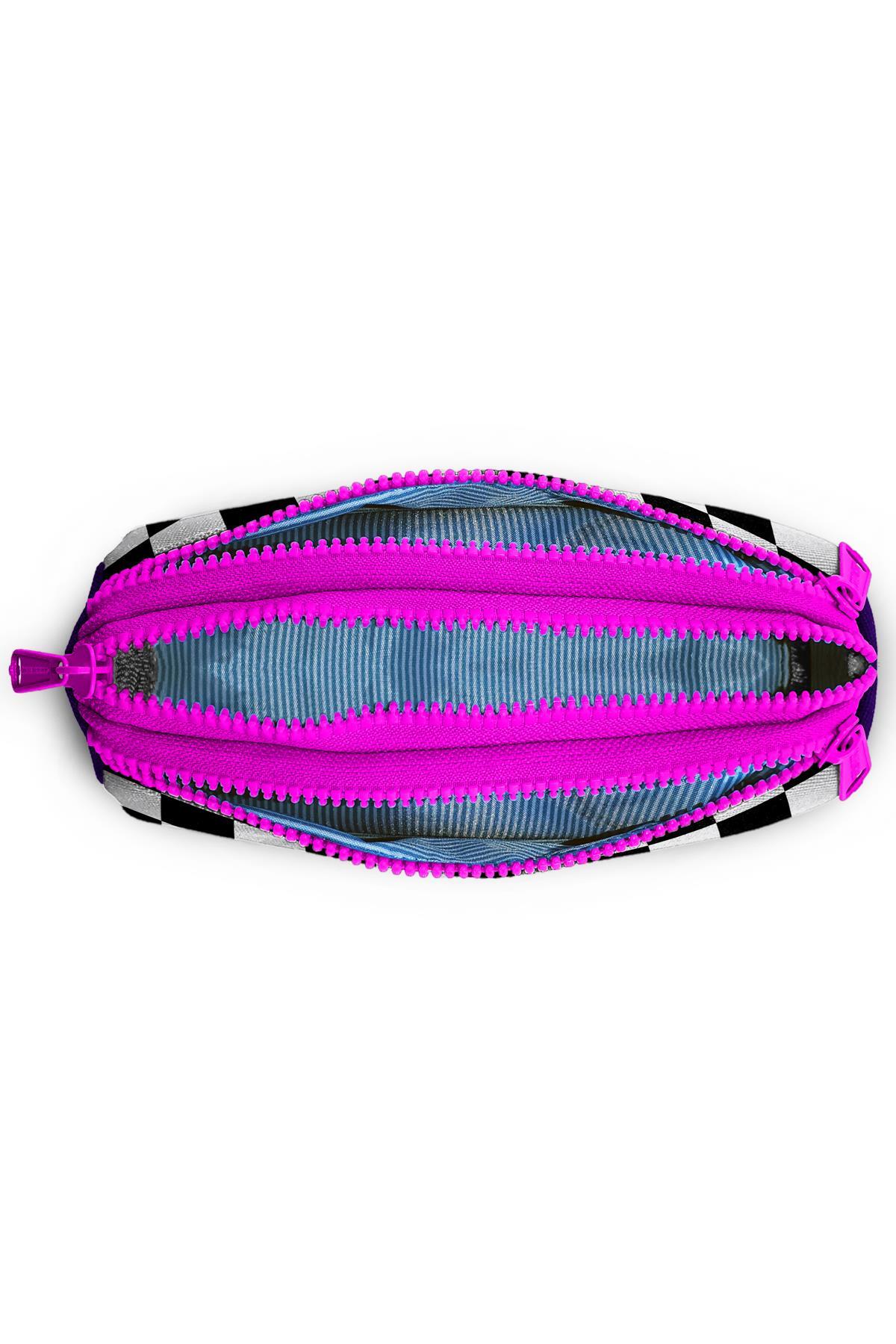 Üç bölmeli, fermuarlı kalem çantası.