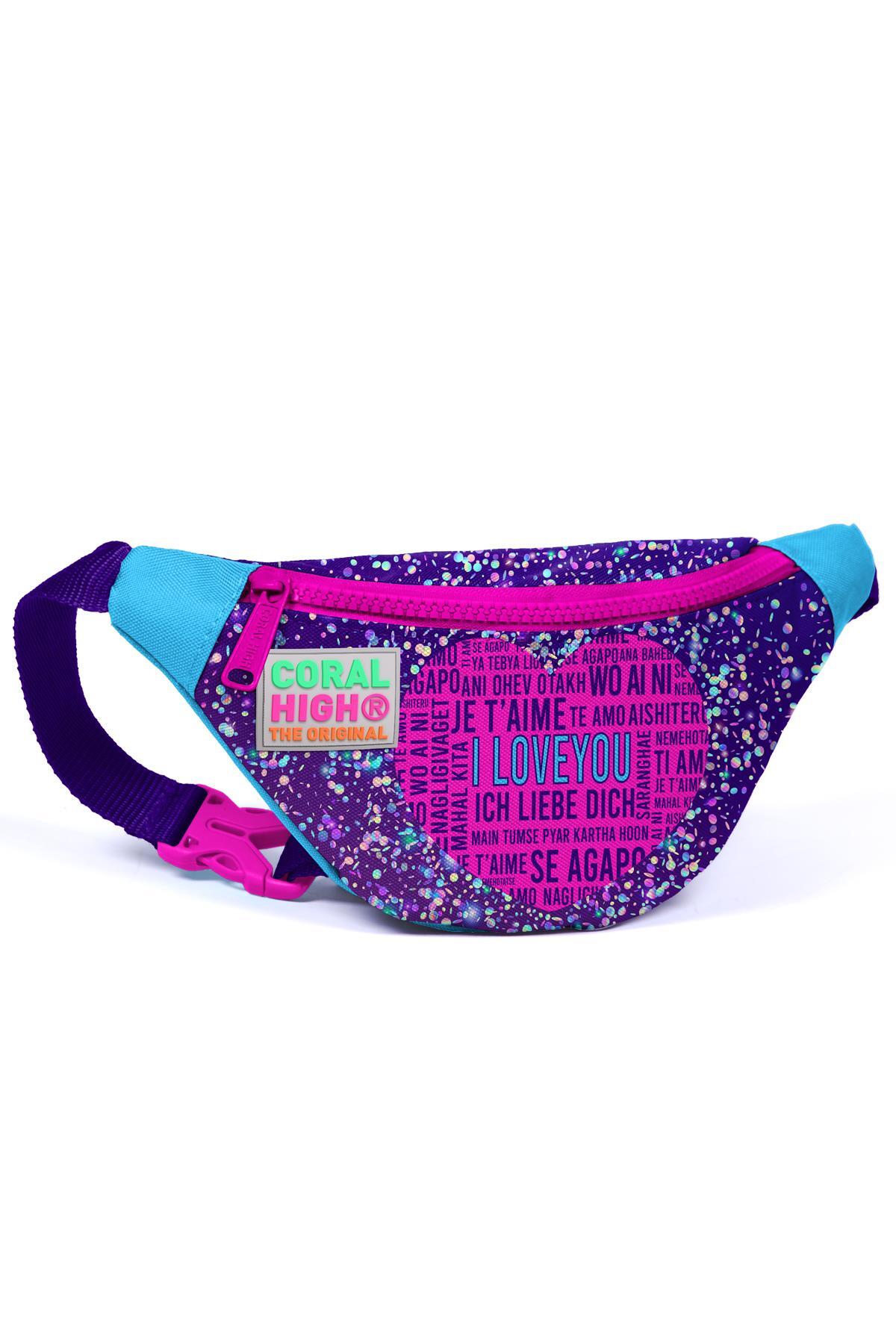Coral High Kids Mor Mavi Pembe Kalp Desenli Bel Çantası 12612