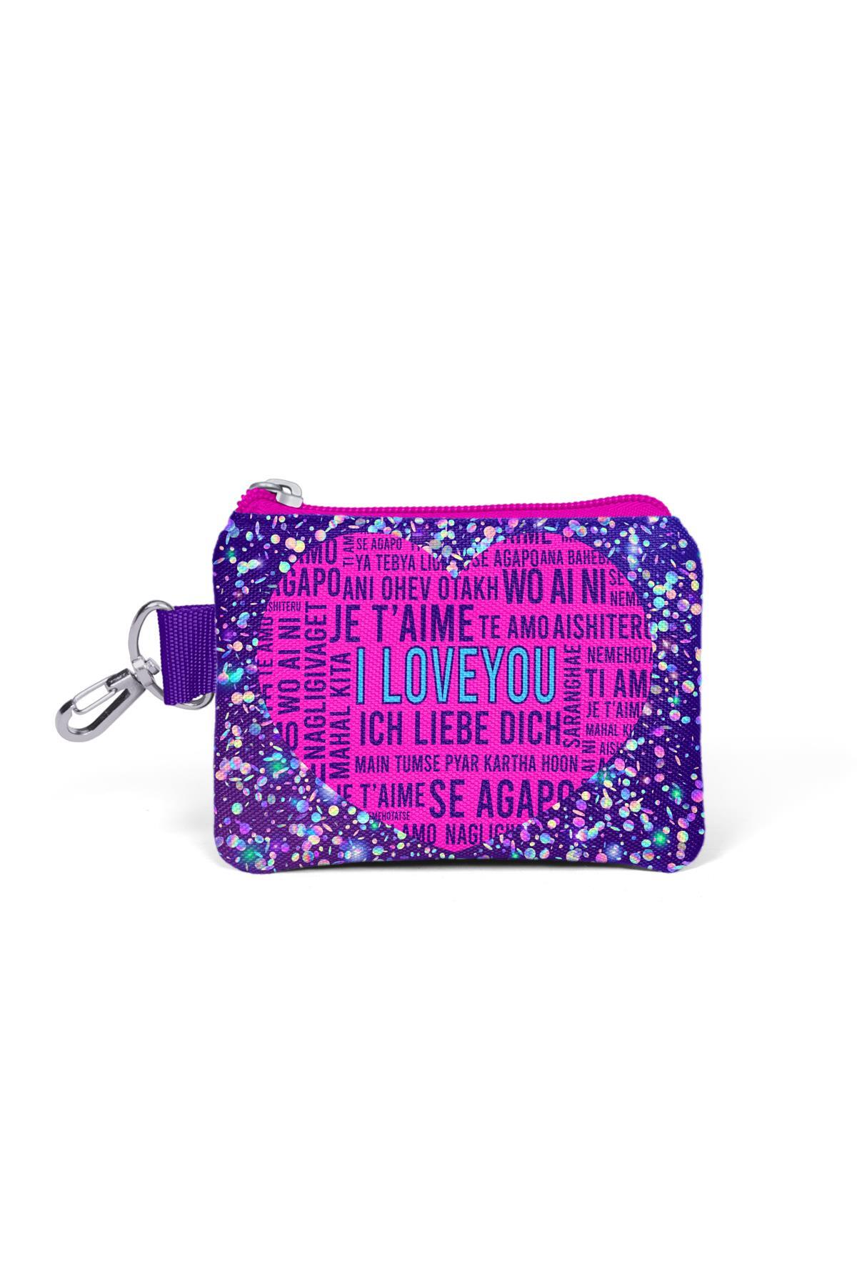 Coral High Kids Mor Mavi Pembe Kalp Desenli Bozuk Para Çantası 21840