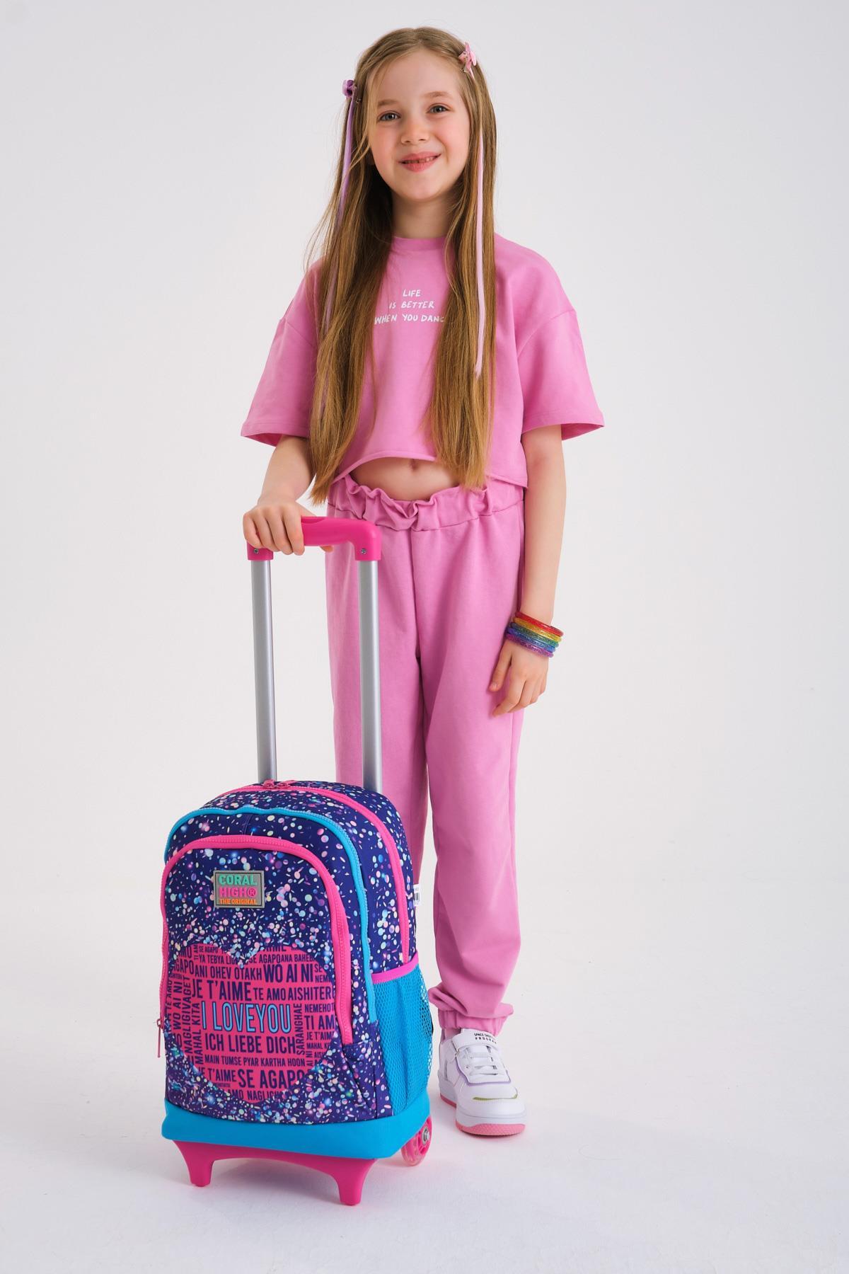 Coral High Kids Mor Mavi Pembe Kalp Desenli Üç Bölmeli Çekçekli Okul Sırt Çantası 23940