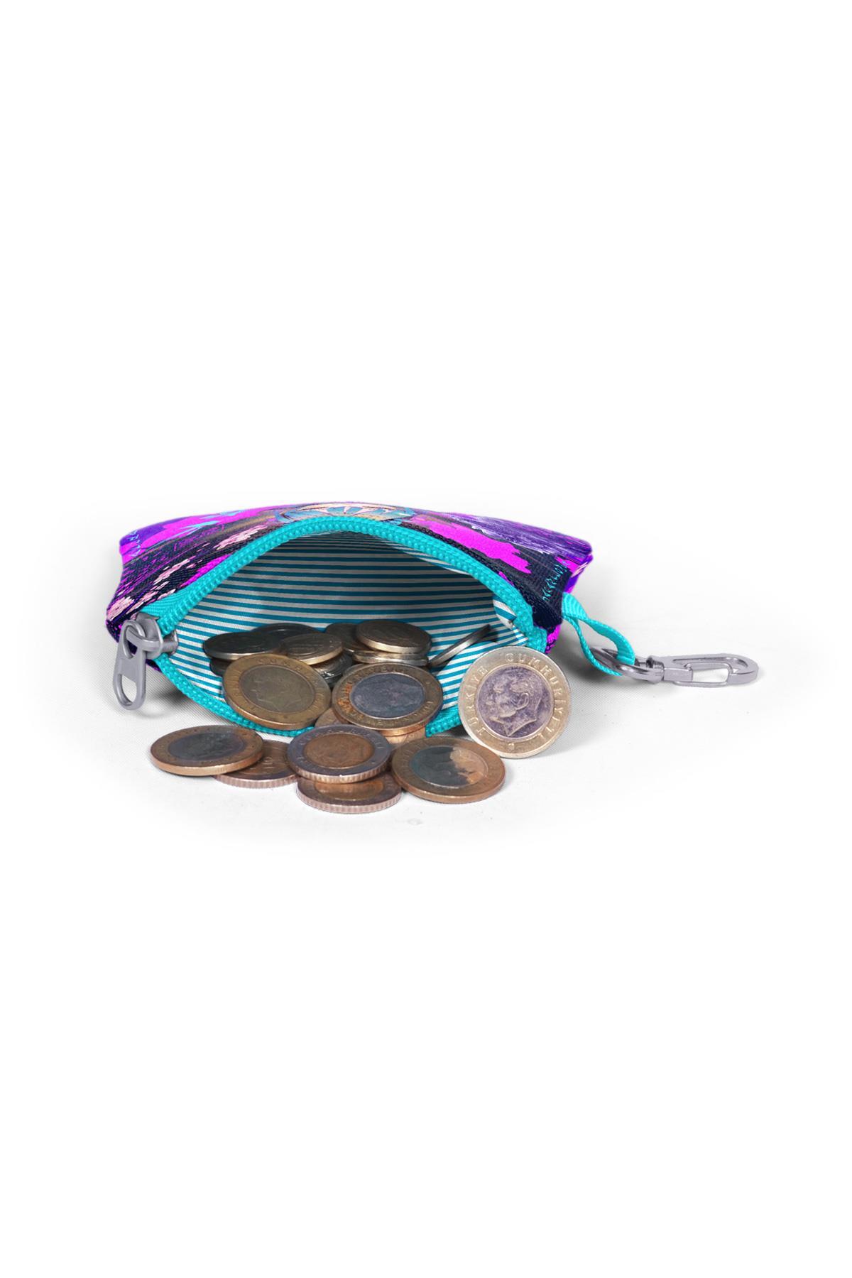 Tek bölmeli, fermuarlı bozuk para cüzdanı.
