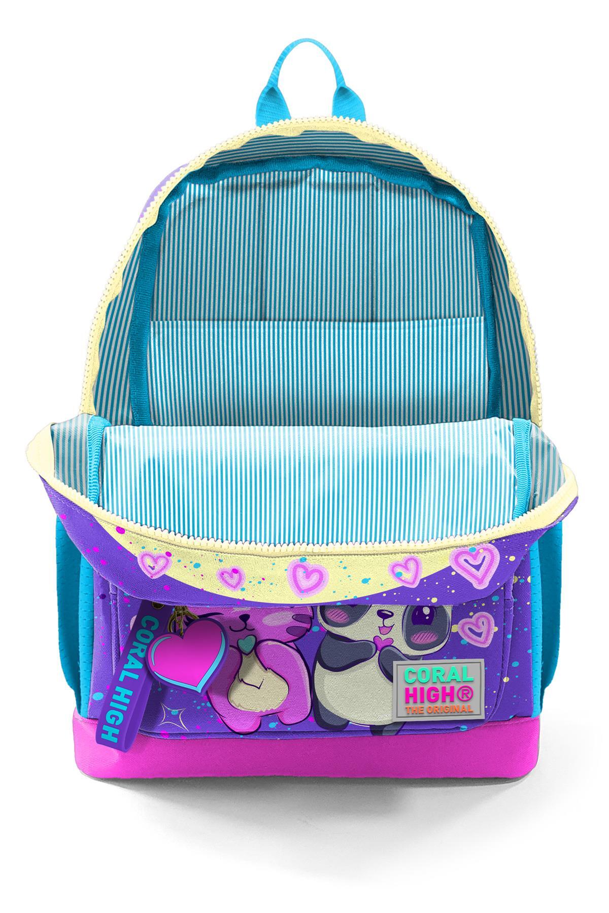 Coral High Kids Mor Pembe Anime Kız Desenli Dört Bölmeli Okul Sırt Çantası 23735