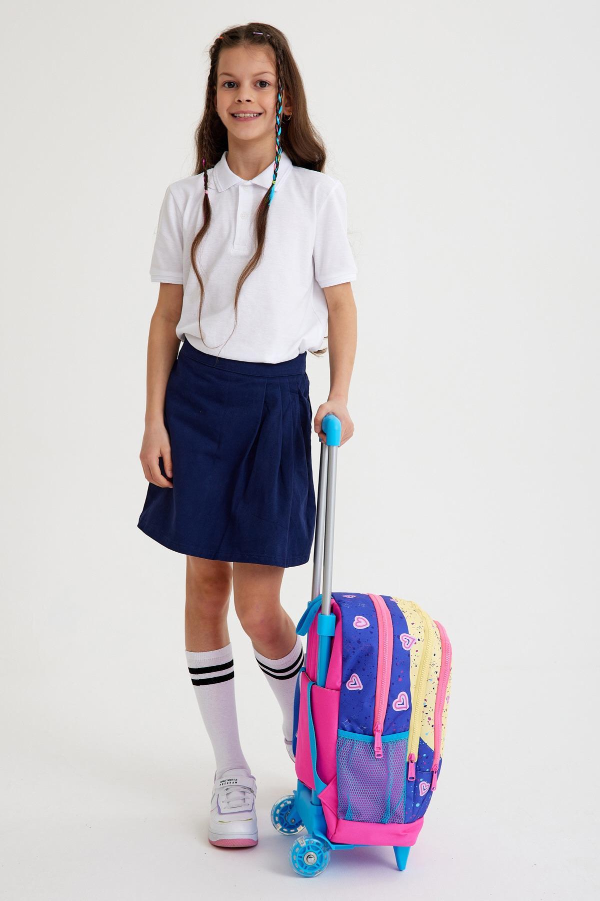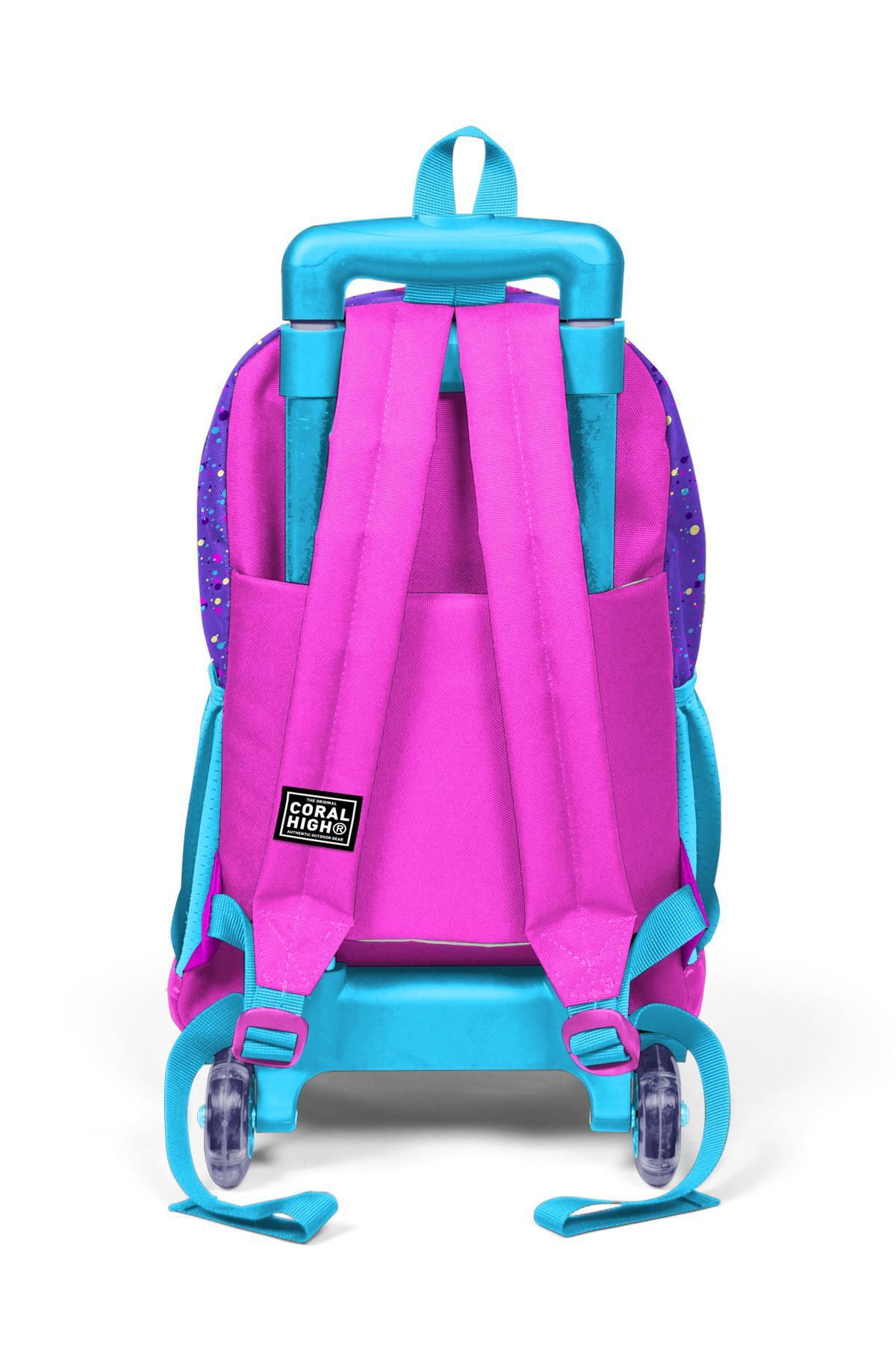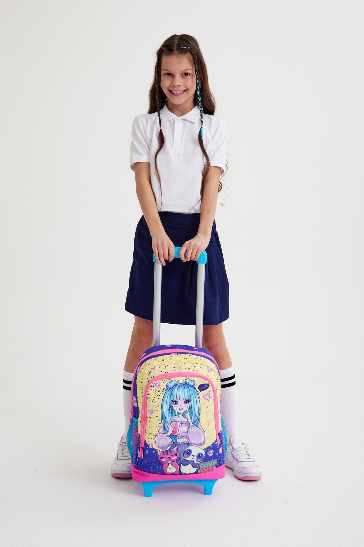 Coral High Kids Mor Pembe Anime Kız Desenli Üç Bölmeli Çekçekli Okul Sırt Çantası 23935
