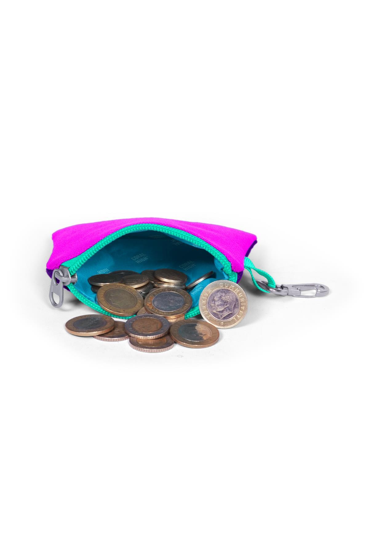 Tek bölmeli, fermuarlı bozuk para cüzdanı.