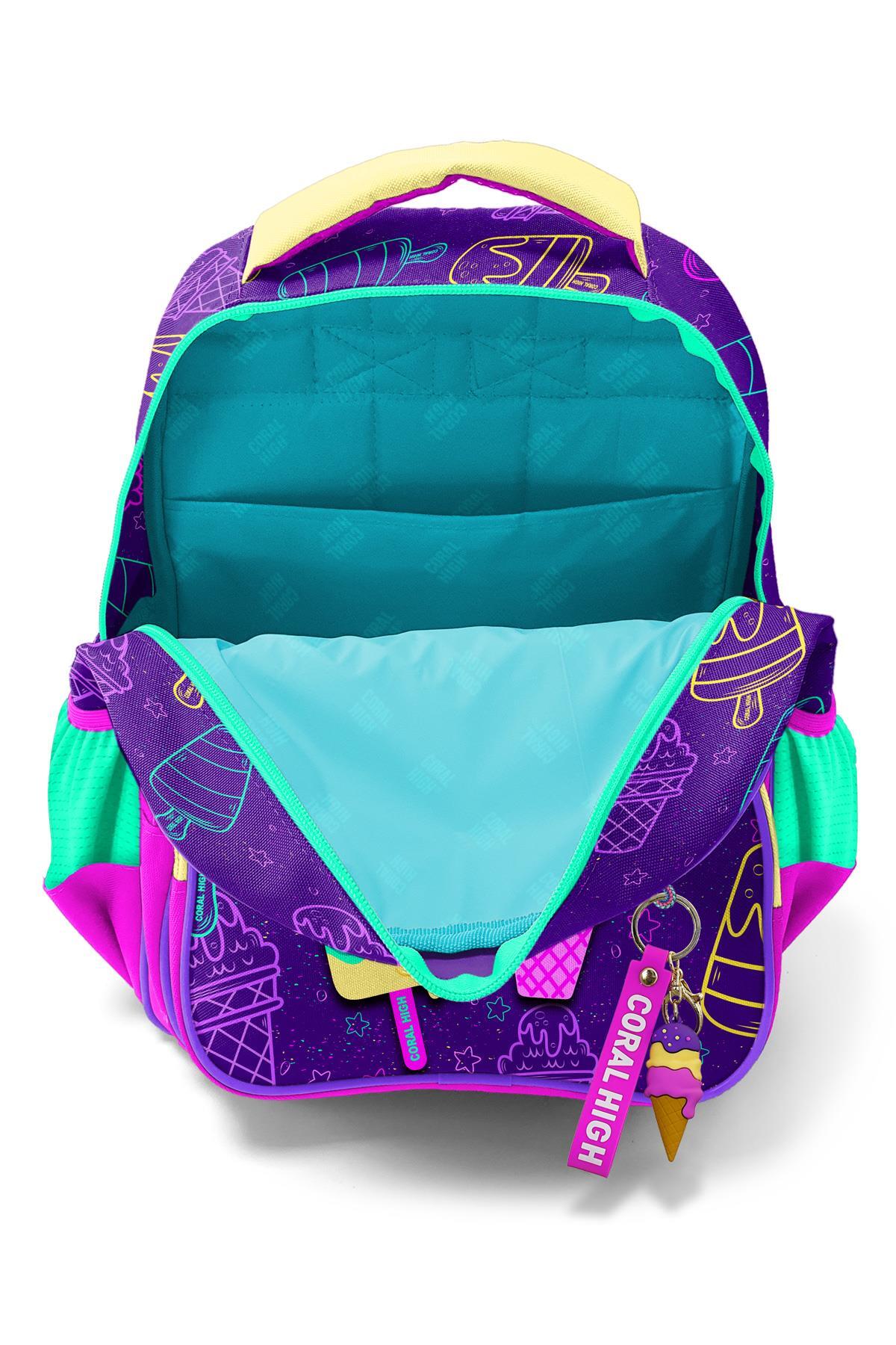 Üç bölmeli okul sırt çantası.