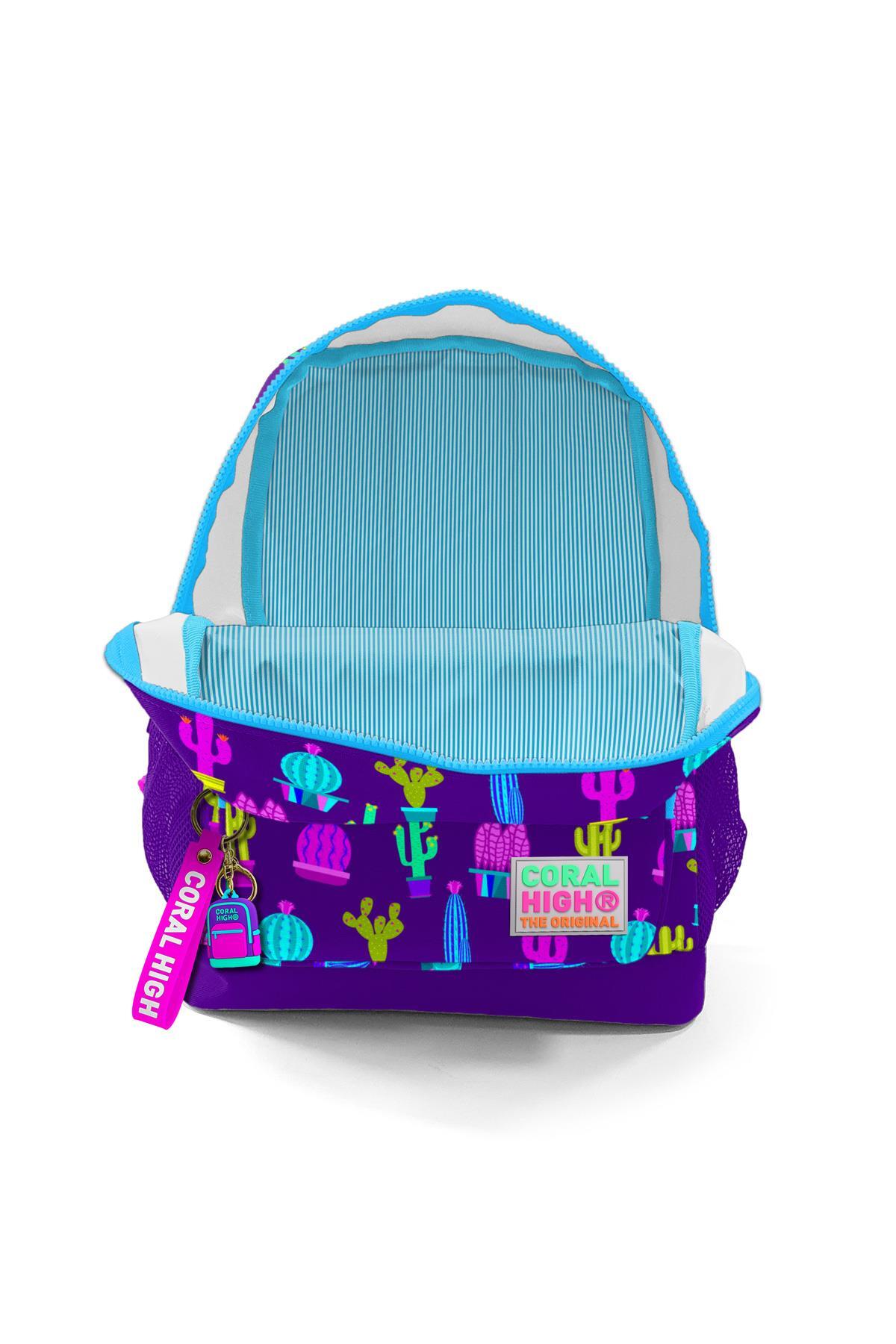 Coral High Kids Mor Pembe Kaktüs Desenli İki Bölmeli Okul Sırt Çantası 23305