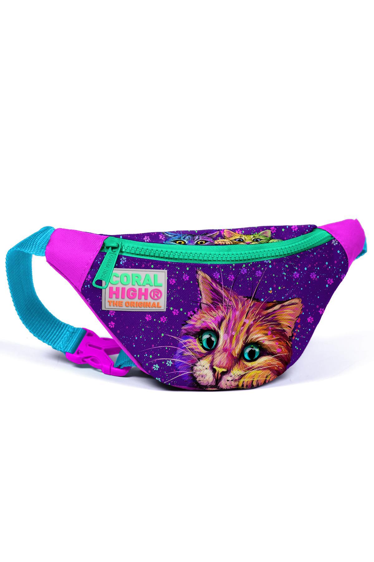 Coral High Kids Mor Pembe Kedi Deseneli Bel Çantası 12604