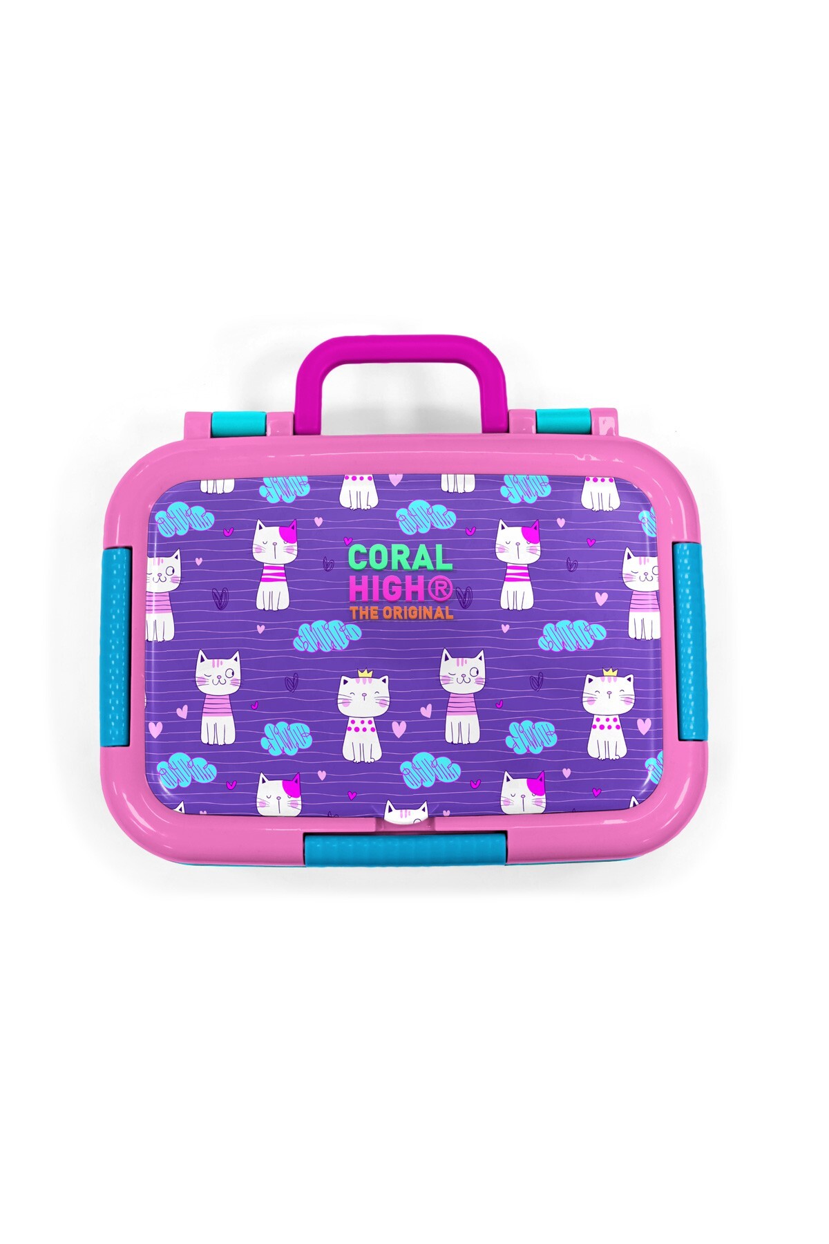 Coral High Kids Mor Pembe Kedi Desenli Paslanmaz Çelik Beslenme Kabı 39206