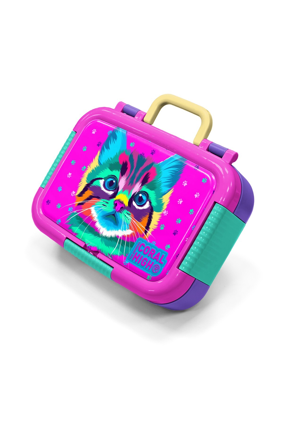 Coral High Kids Mor Pembe Kedi Desenli Paslanmaz Çelik Beslenme Kabı 39319