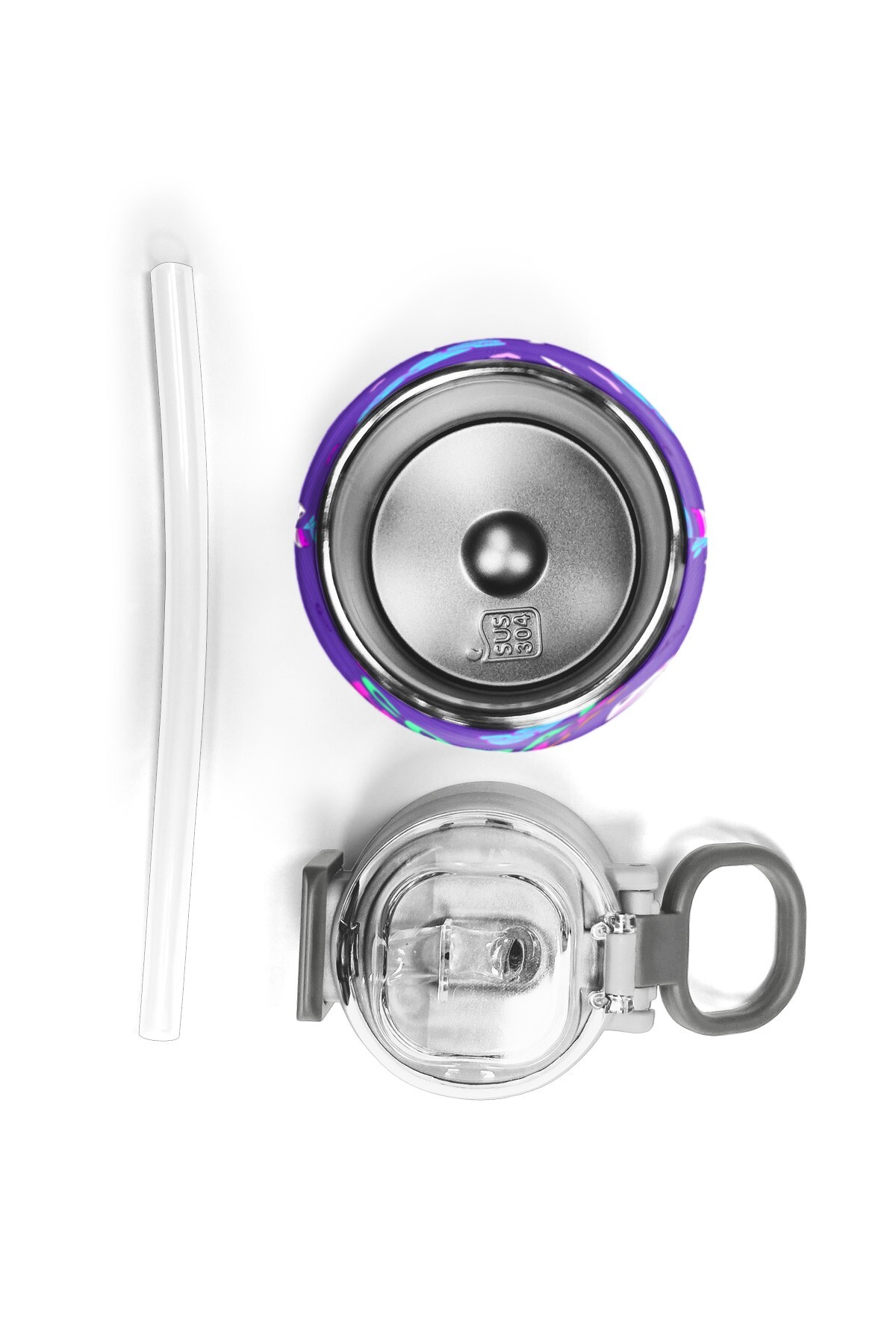 Coral High Kids Mor Renk Geçişli Desenli Pipetli ve Direkt İçim Çelik Termos 500 ml 31964