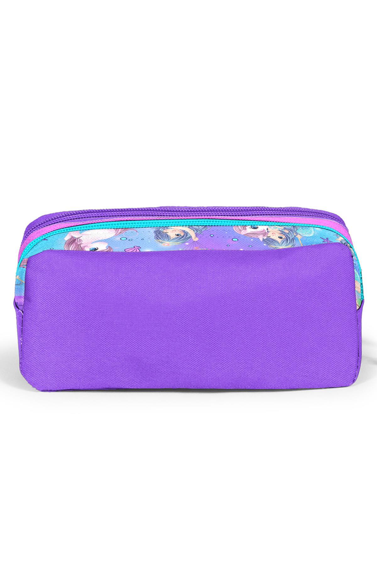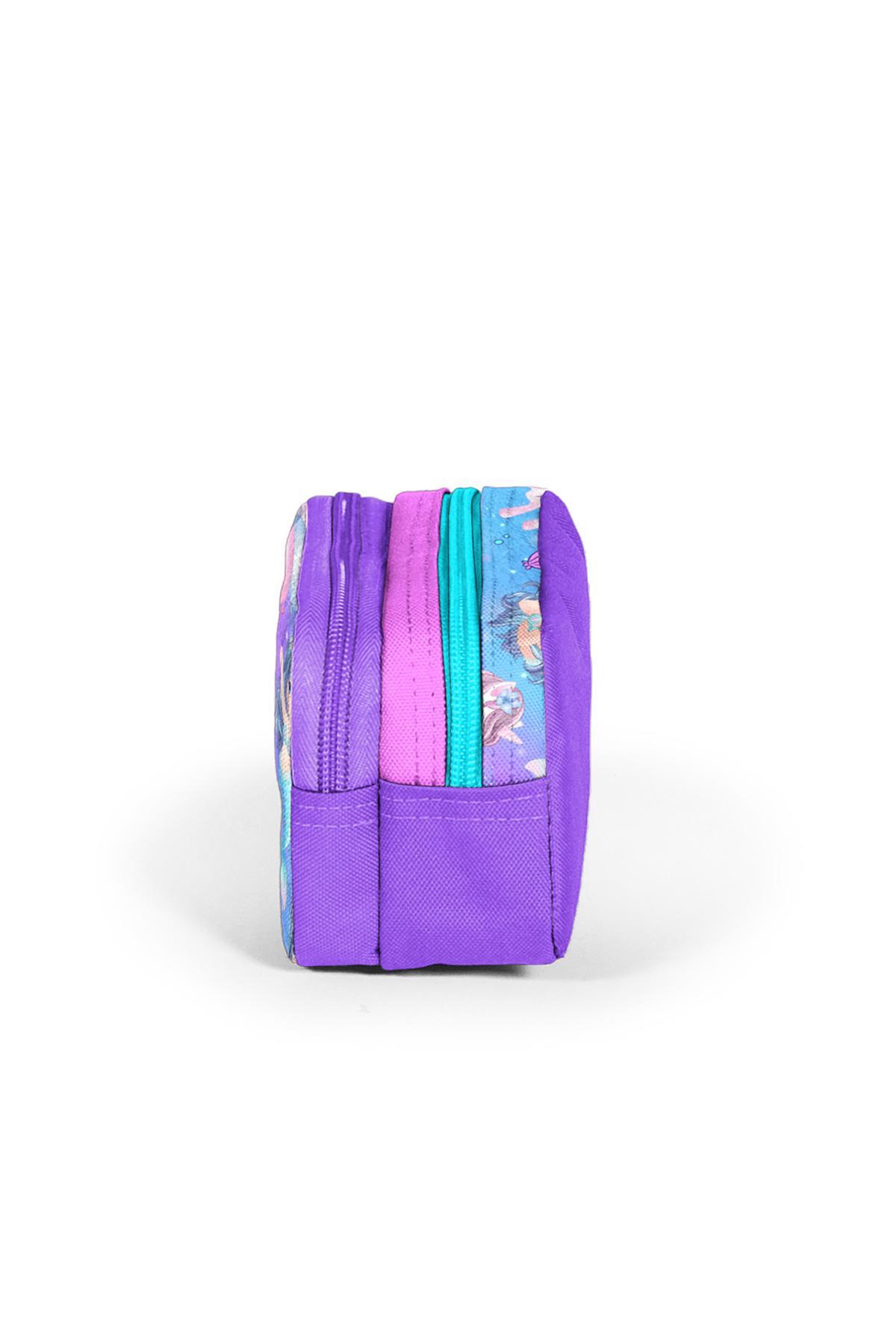 Coral High Kids Mor Pembe Unicorn Deniz Kızı Desenli İki Bölmeli Kalem Çantası 12090