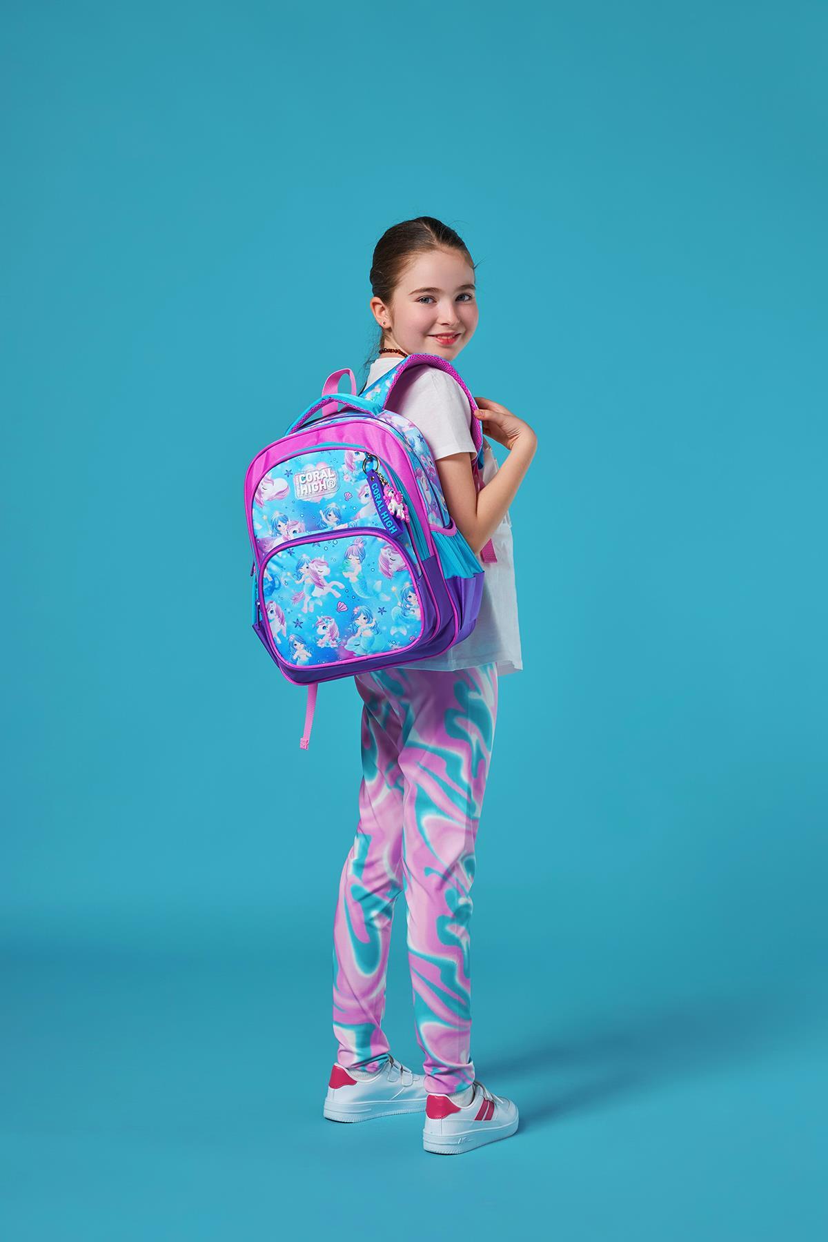 Coral High Kids Mor Pembe Unicorn Deniz Kızı Desenli Üç Bölmeli Okul Sırt Çantası 23657