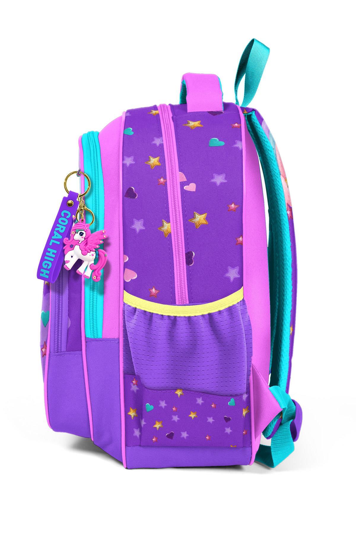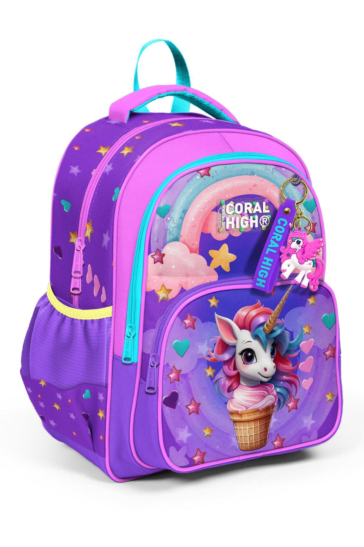 Coral High Kids Mor Pembe Unicorn Dondurma Desenli Üç Bölmeli Okul Sırt Çantası 14421