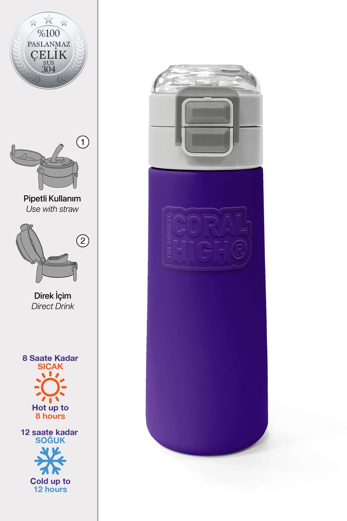 Coral High Kids Mor Pipetli ve Direkt İçim Çelik Termos 500 ml 31826