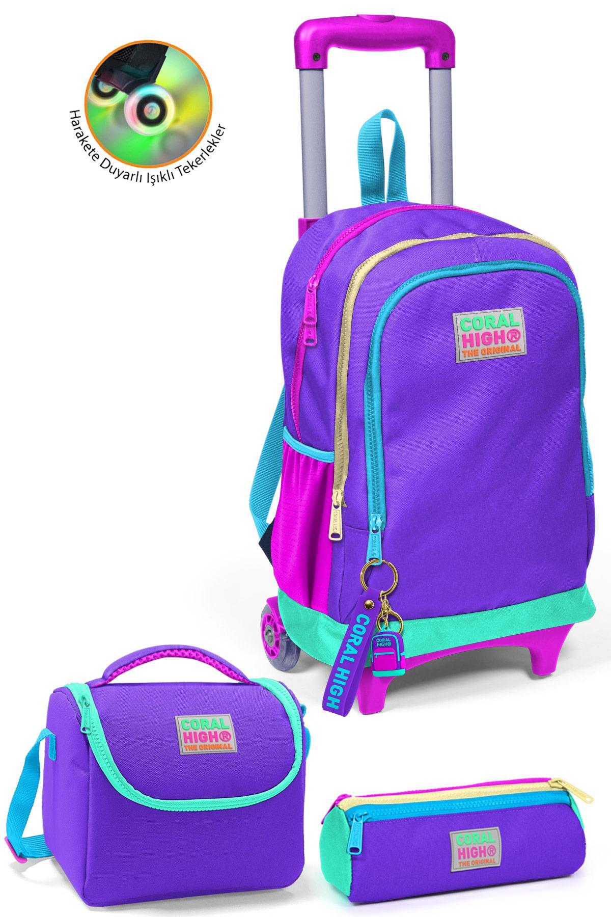 Coral High Kids Mor Renk Detaylı 3'lü Çanta Seti SET0123934