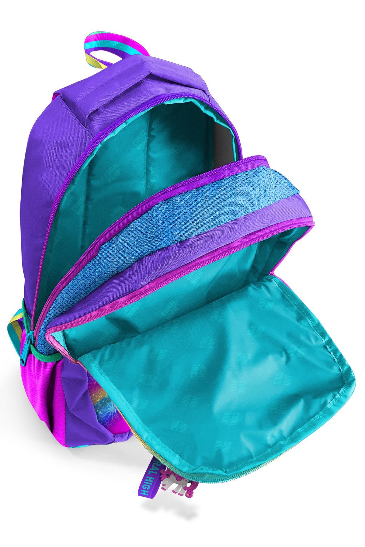 Çantanın yan kısımlarında 2 adet esnek file malzemeden suluk ve aksesuar cebi bulunmaktadır.