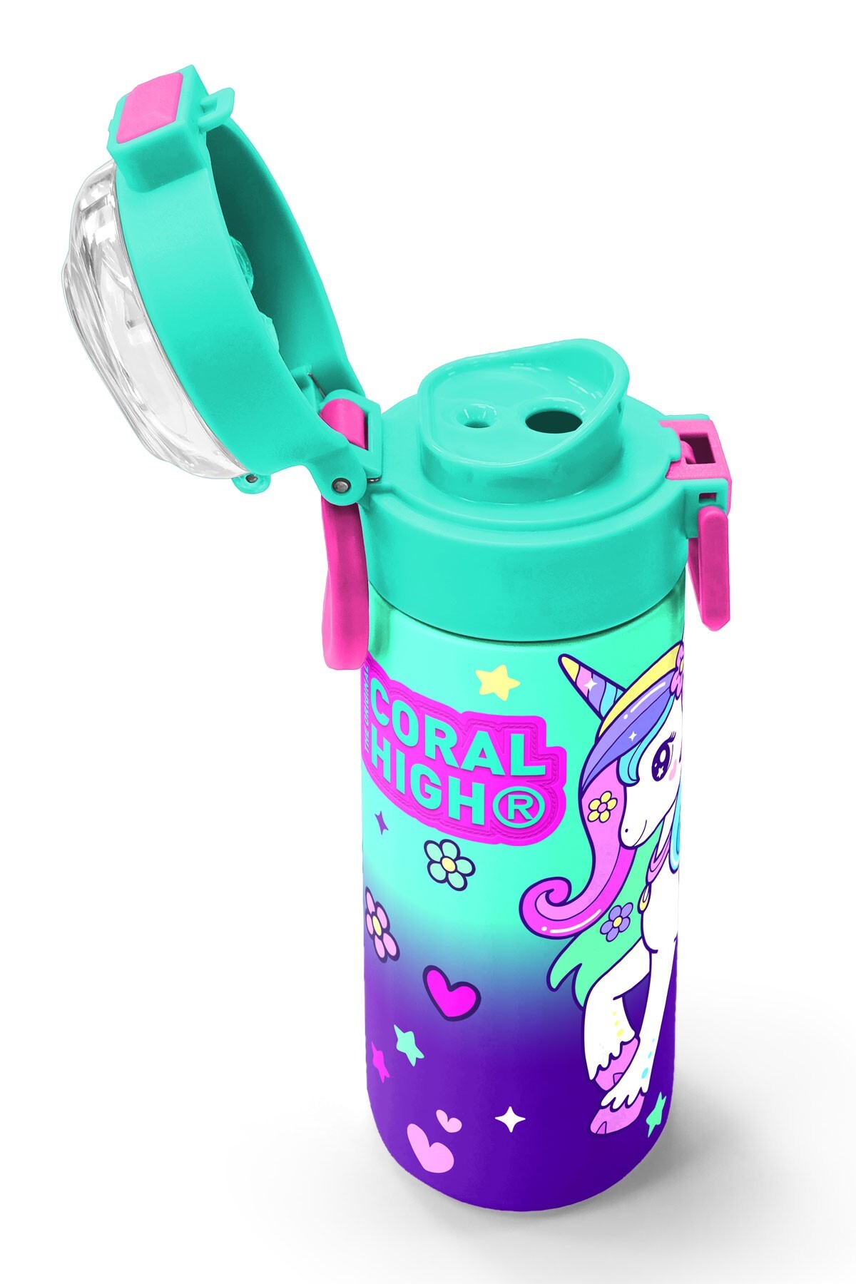 Coral High Kids Mor Su Yeşili Unicorn Desenli Pipetli ve Direkt İçim Çelik Termos 500 ml 31805