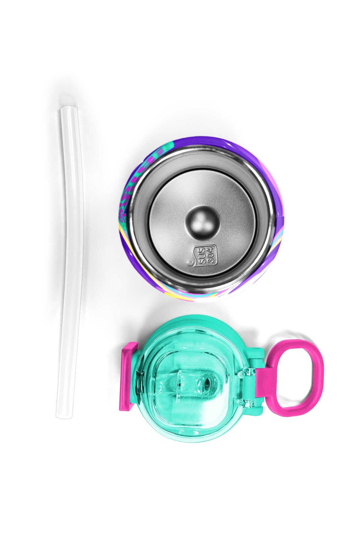 Coral High Kids Mor Su Yeşili Unicorn Desenli Pipetli ve Direkt İçim Çelik Termos 500 ml 31818