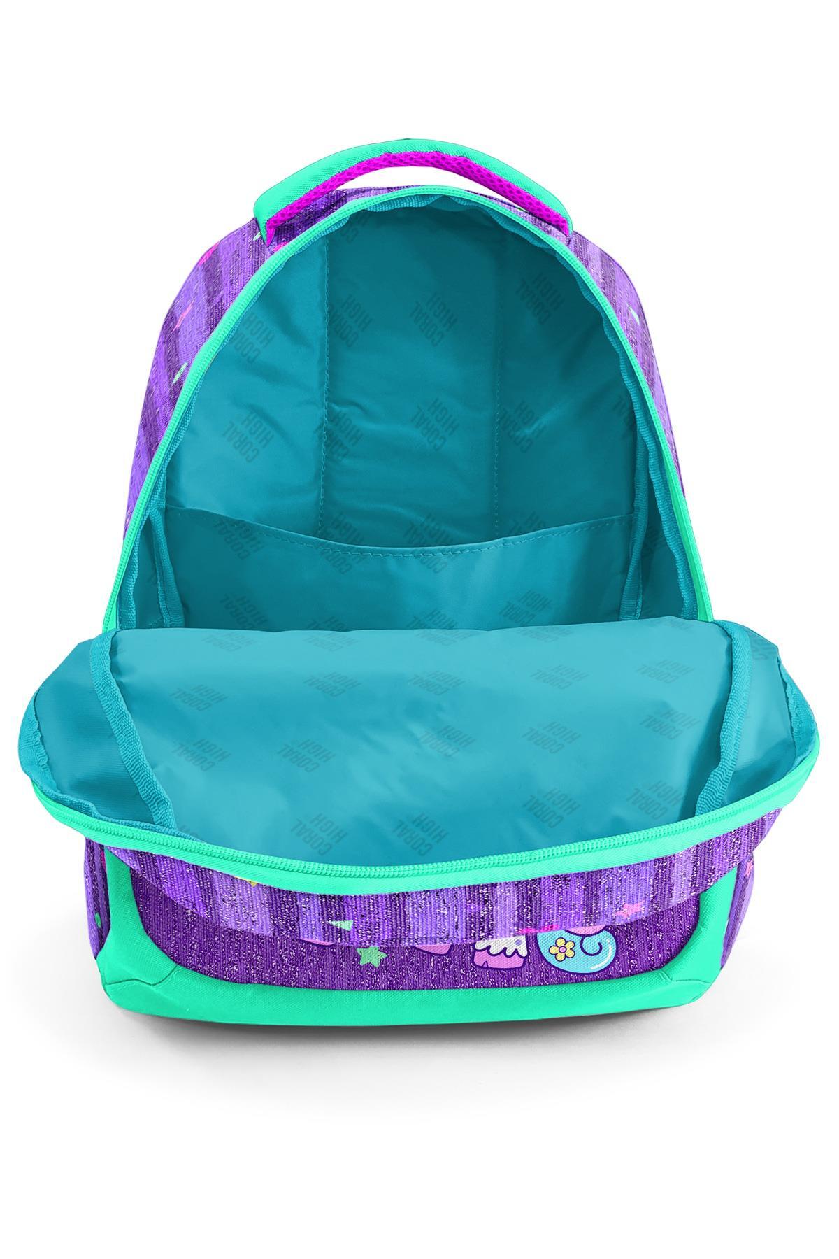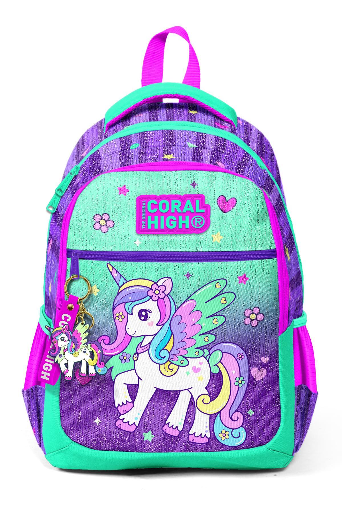 Coral High Kids Mor Su Yeşili Unicorn Desenli Üç Bölmeli Okul Sırt Çantası 23487