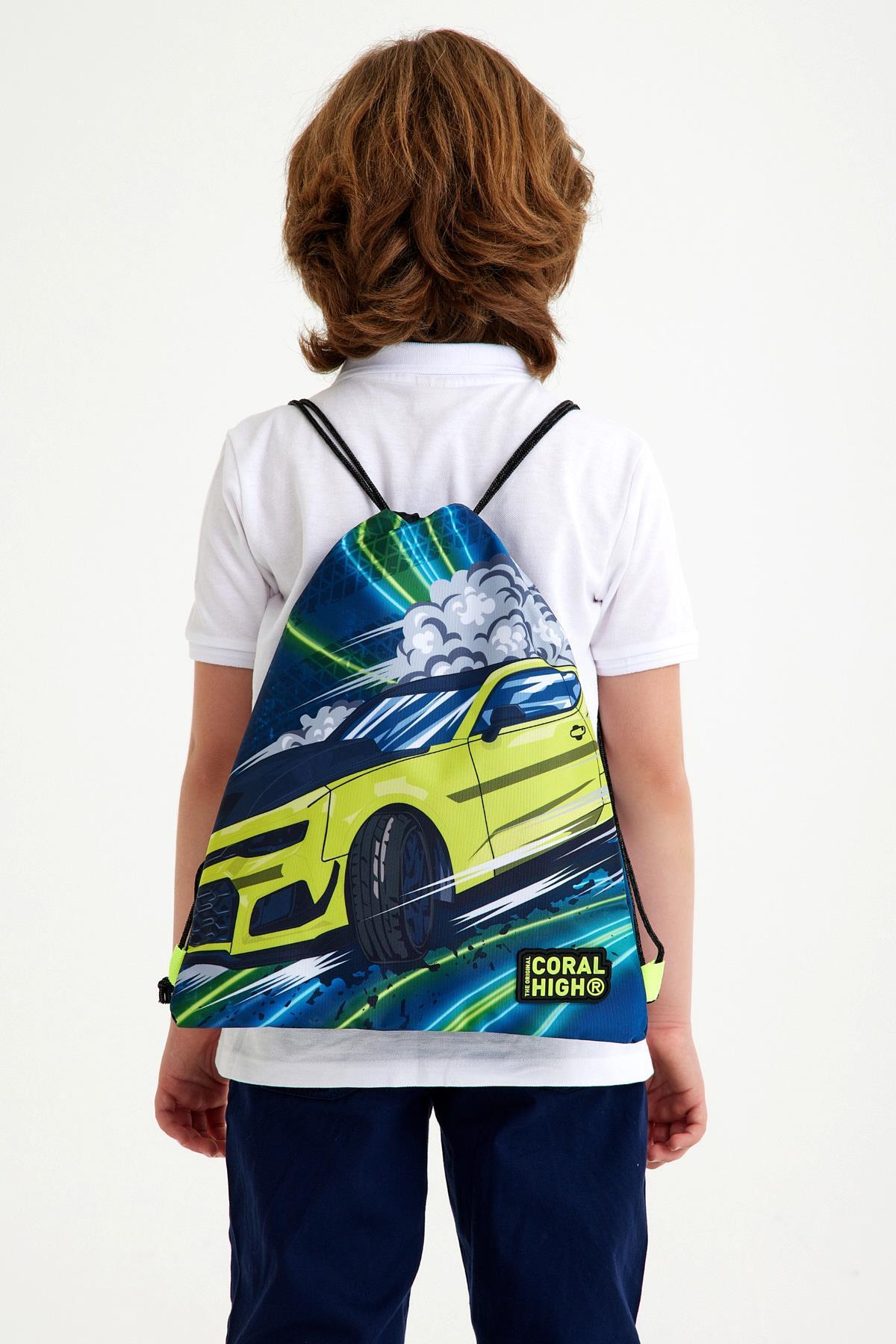 Coral High Kids Nefti Fosforlu Sarı Araba Desenli İpli Büzgülü Sırt Çantası 22480