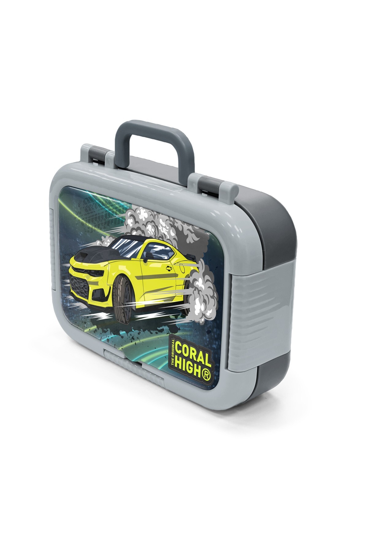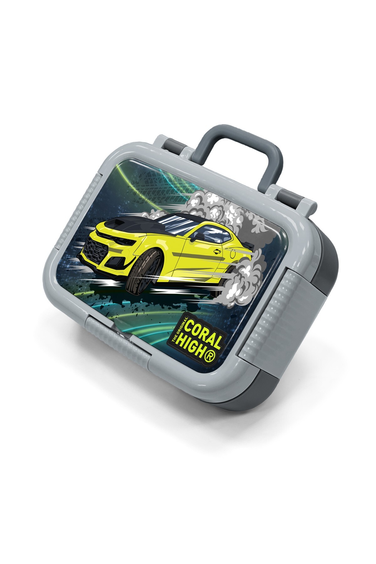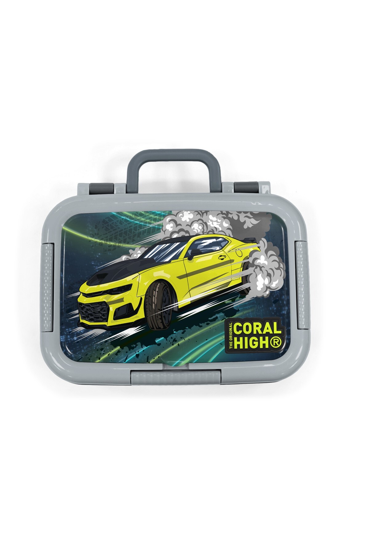 Coral High Kids Nefti Fosforlu Sarı Araba Desenli Paslanmaz Çelik Beslenme Kabı 39358