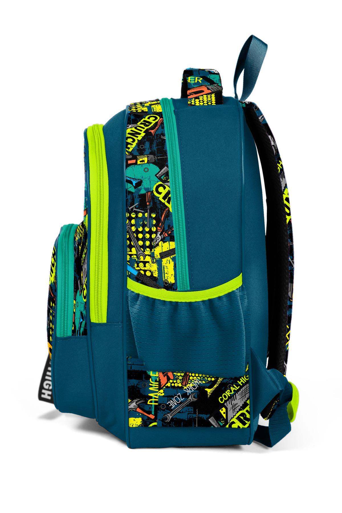 Coral High Kids Nefti Siyah Tamir Seti Desenli Üç Bölmeli Okul Sırt Çantası 14417