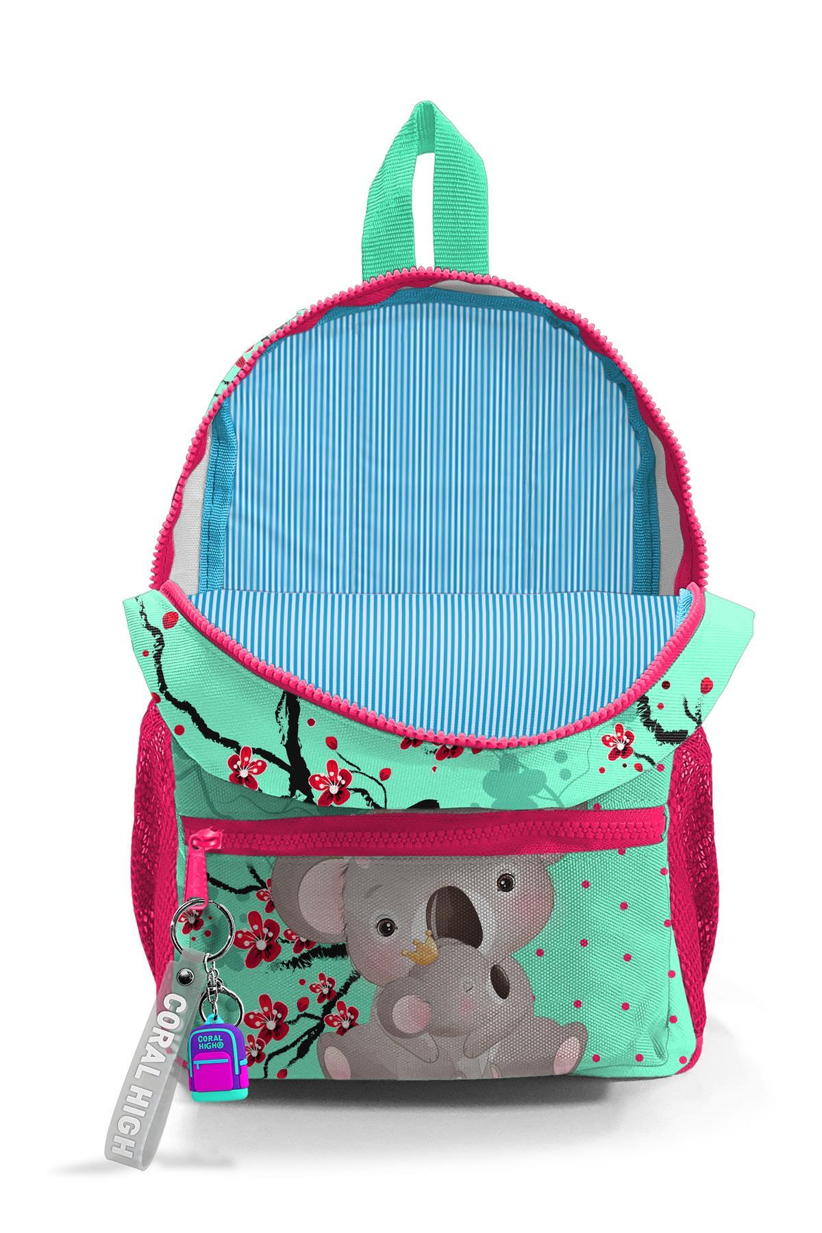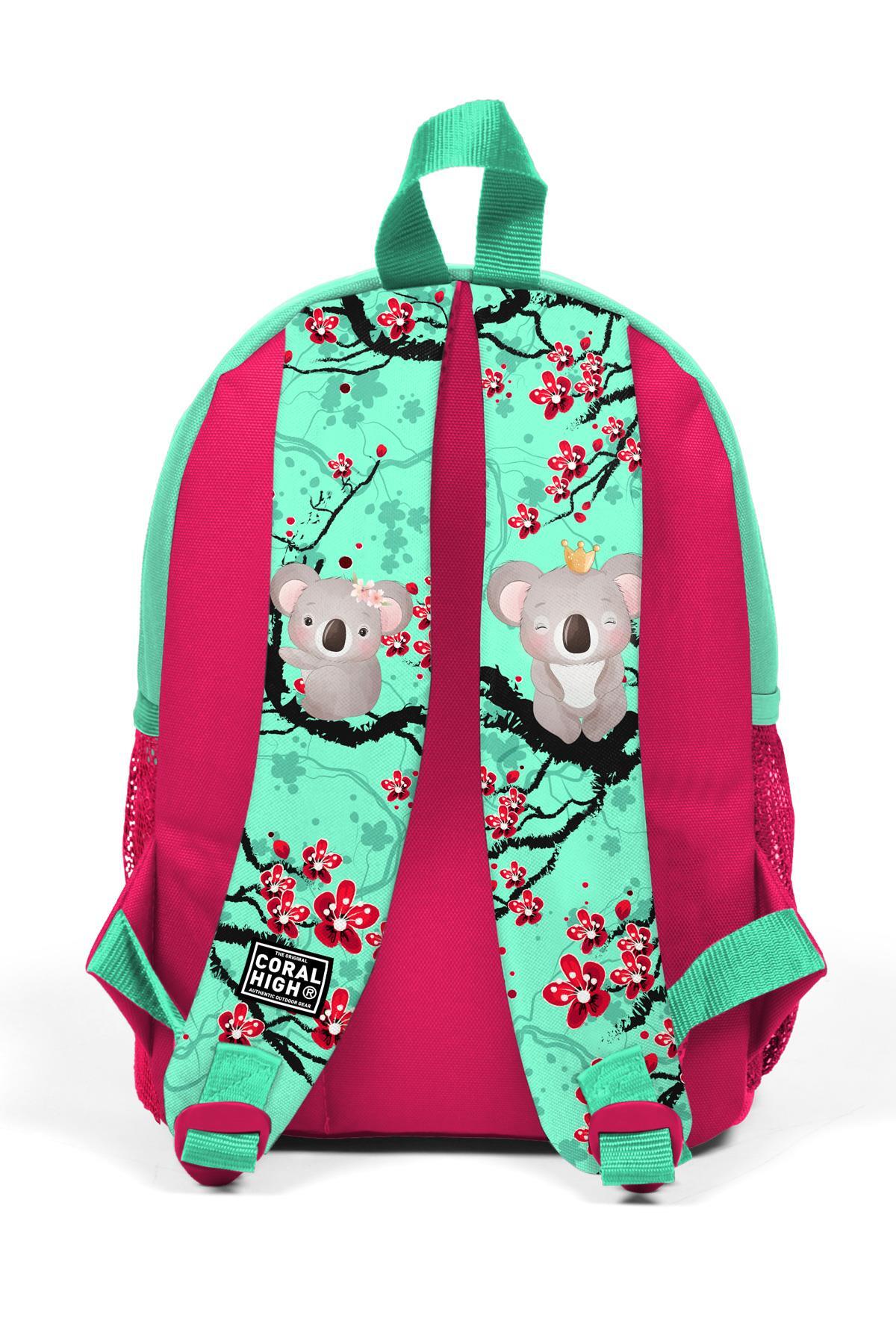 Minik Yuva Sırt Çantası Su Yeşili Neon Mercan Koala Desenli İki Bölmeli 23513