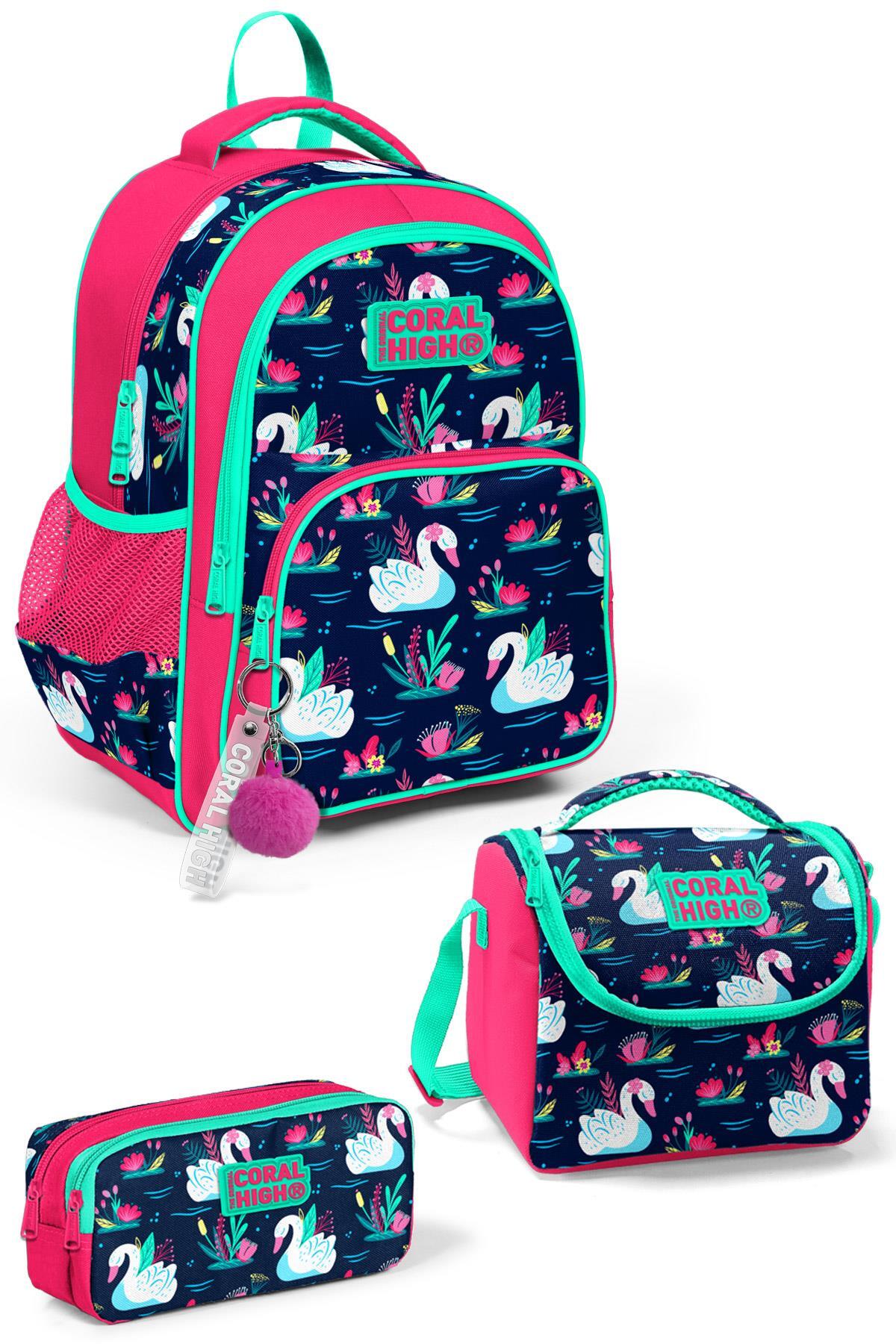 Coral High Kids Neon Mercan Lacivert Kuğu Desenli 3'lü Okul Çanta Seti SET0123402