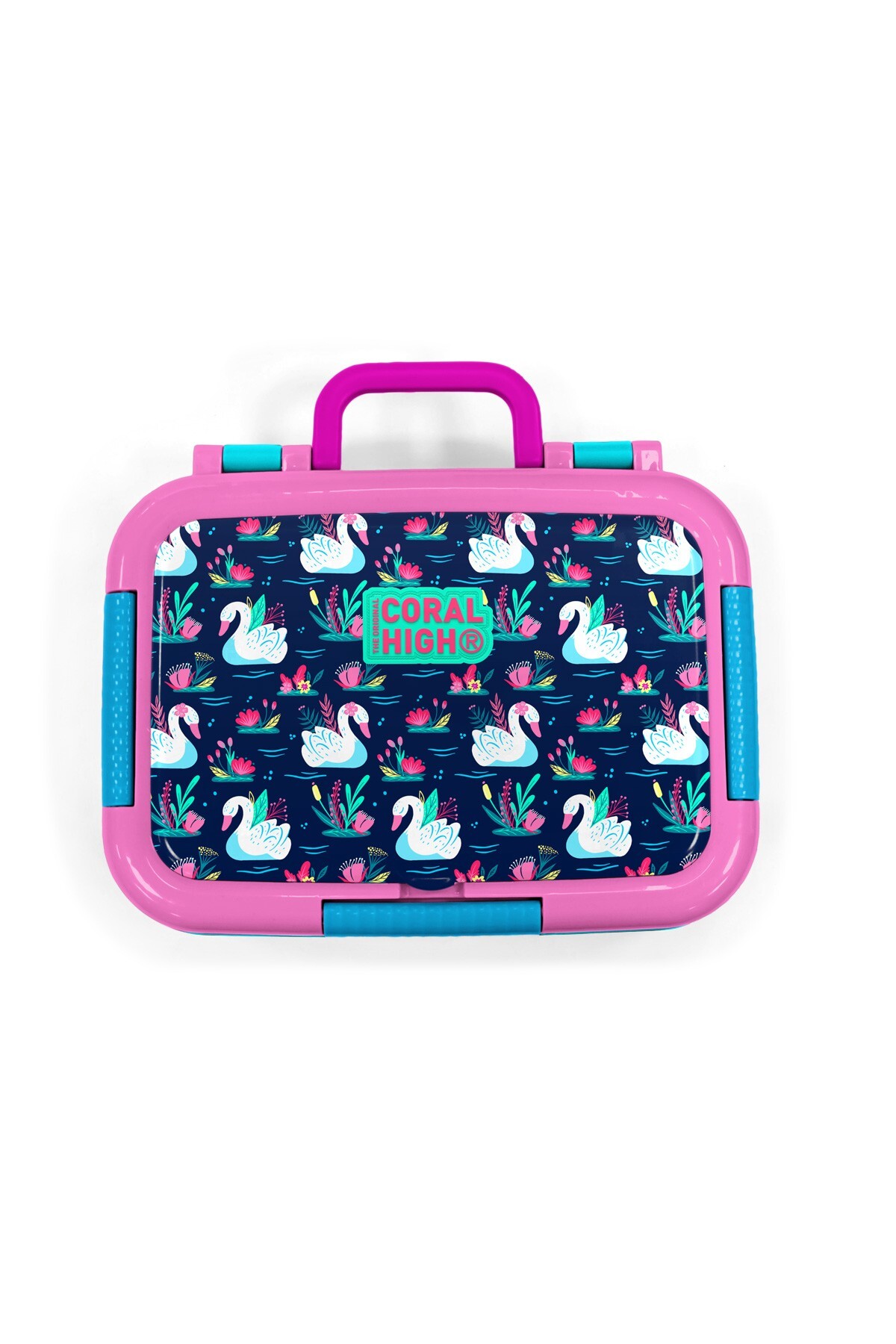 Coral High Kids Neon Mercan Lacivert Kuğu Desenli Paslanmaz Çelik Beslenme Kabı 39304