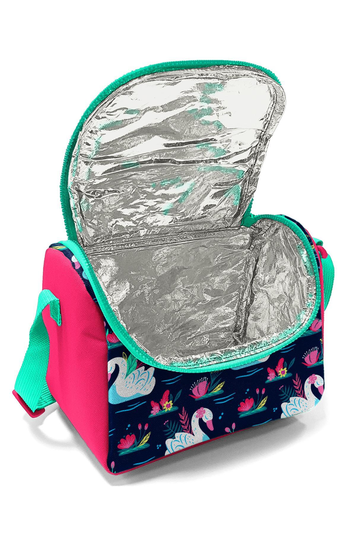 Coral High Kids Neon Mercan Lacivert Kuğu Desenli Thermo Beslenme Çantası 11819
