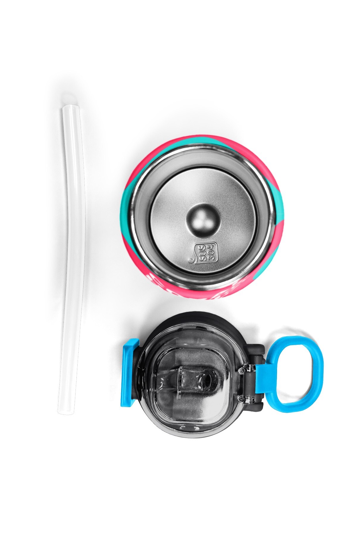 Coral High Kids Neon Mercan Turuncu Desenli Pipetli ve Direkt İçim Çelik Termos 500 ml 31885