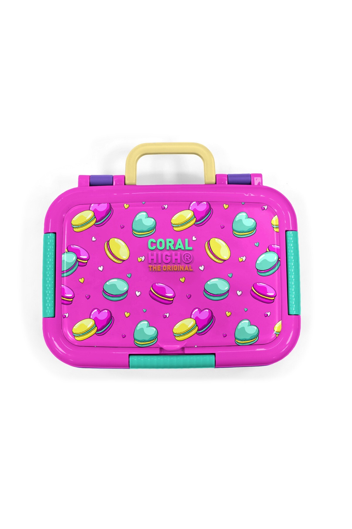 Coral High Kids Açık Pembe Su Yeşili Makaron Desenli Paslanmaz Çelik Beslenme Kabı 39216