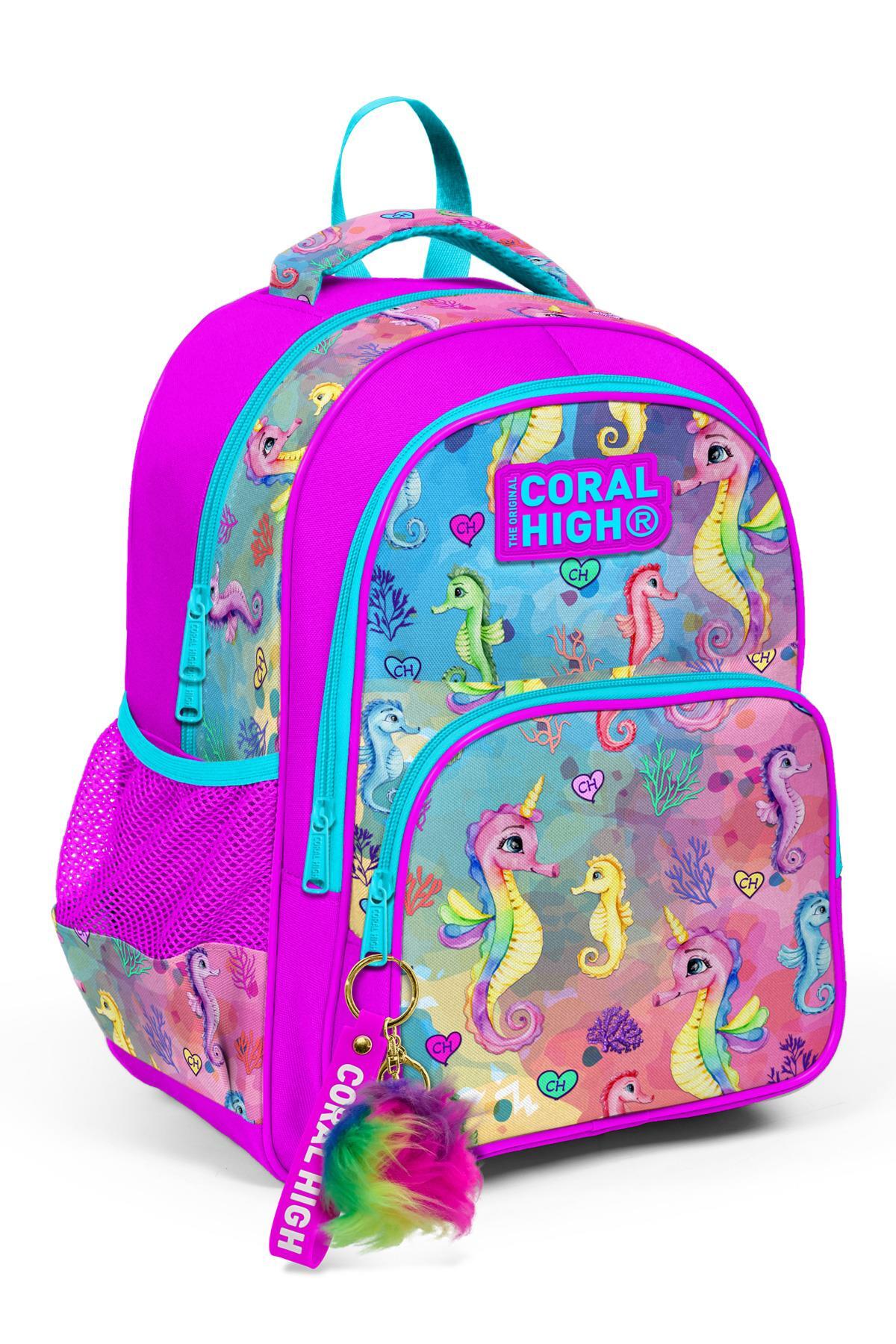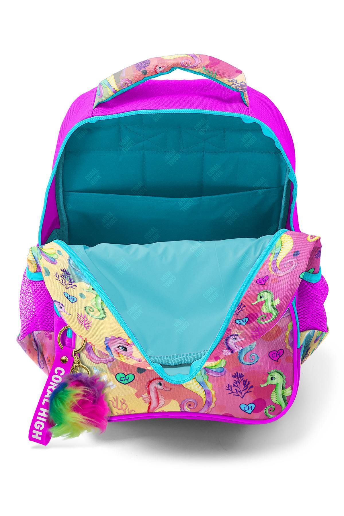 Coral High Kids Pembe Rengarenk Denizatı Desenli Üç Bölmeli Okul Sırt Çantası 14412