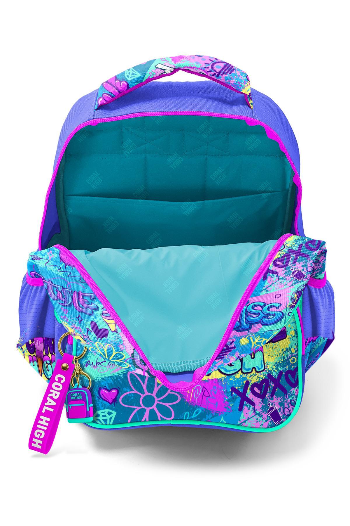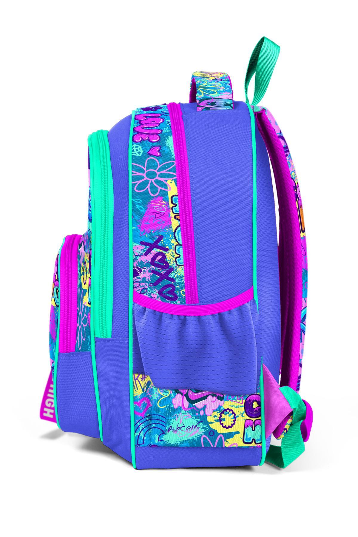 Üç bölmeli okul sırt çantası.