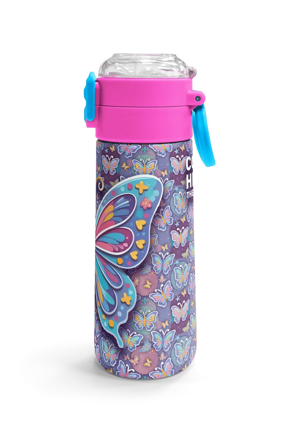 Coral High Kids Pastel Renkli Kelebek Desenli Pipetli ve Direkt İçim Çelik Termos 500 ml 38106