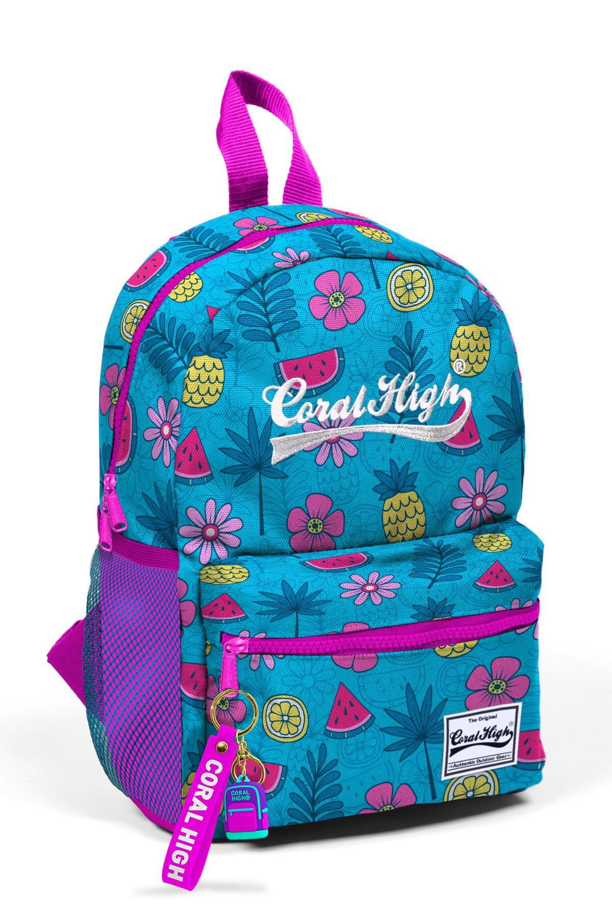 Minik Yuva Sırt Çantası Pembe Mavi Tropikal Desenli İki Bölmeli 23147