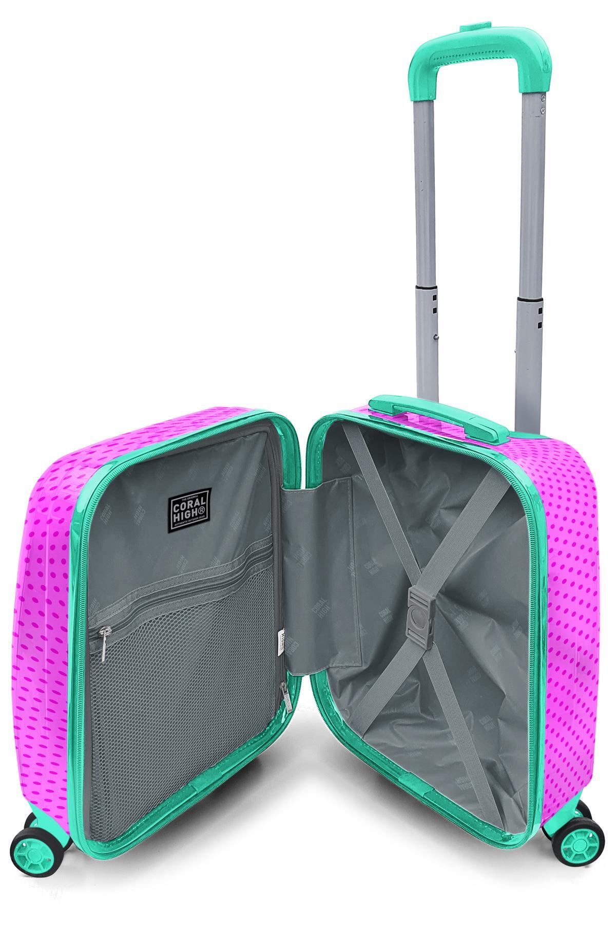 Coral High Kids Pembe Su Yeşili Kedi Desenli Çocuk Valizi 16730