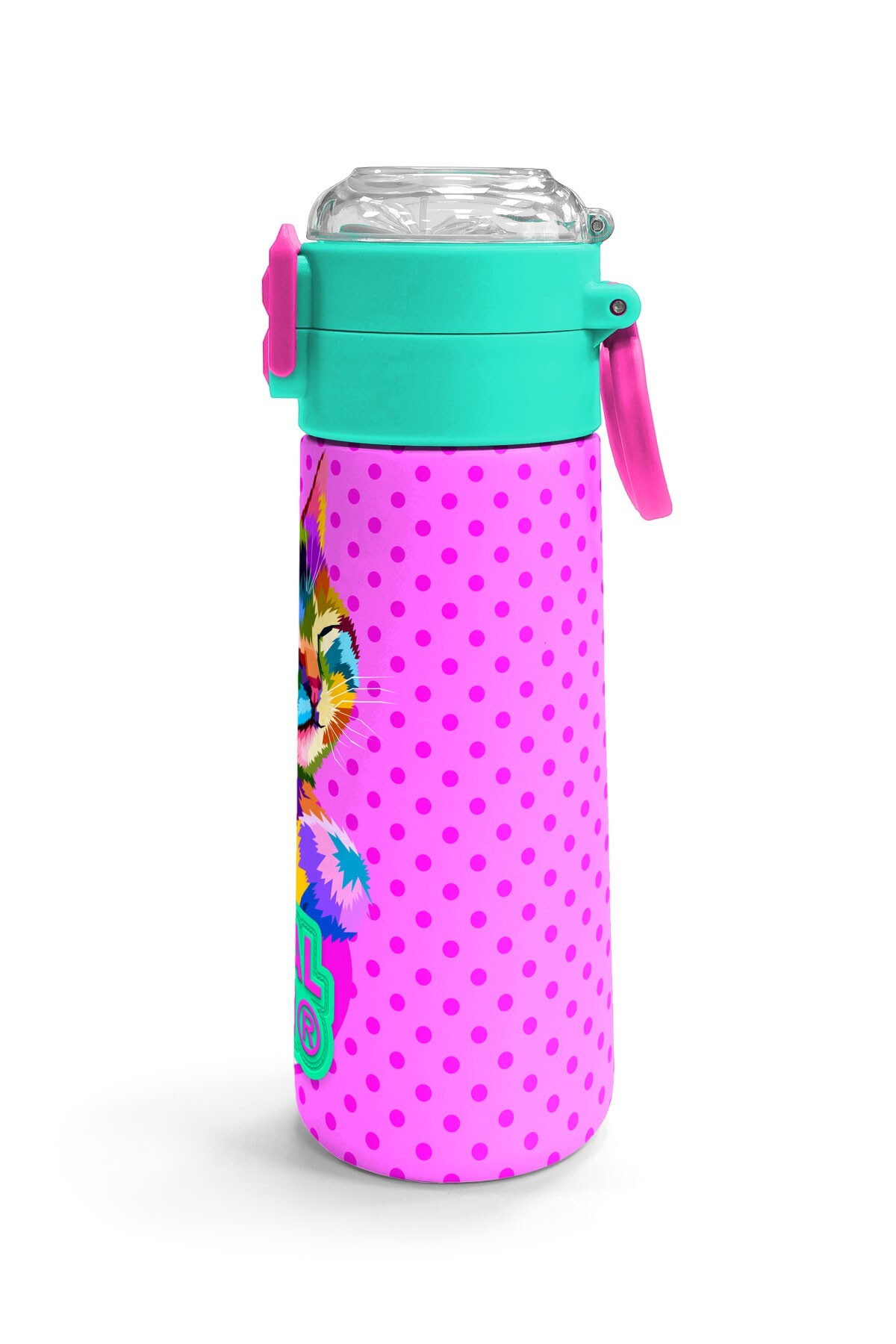 Coral High Kids Pembe Mavi Kedi Desenli Pipetli ve Direkt İçim Çelik Termos 500 ml 31842