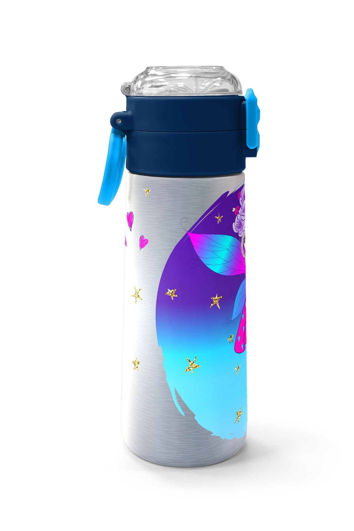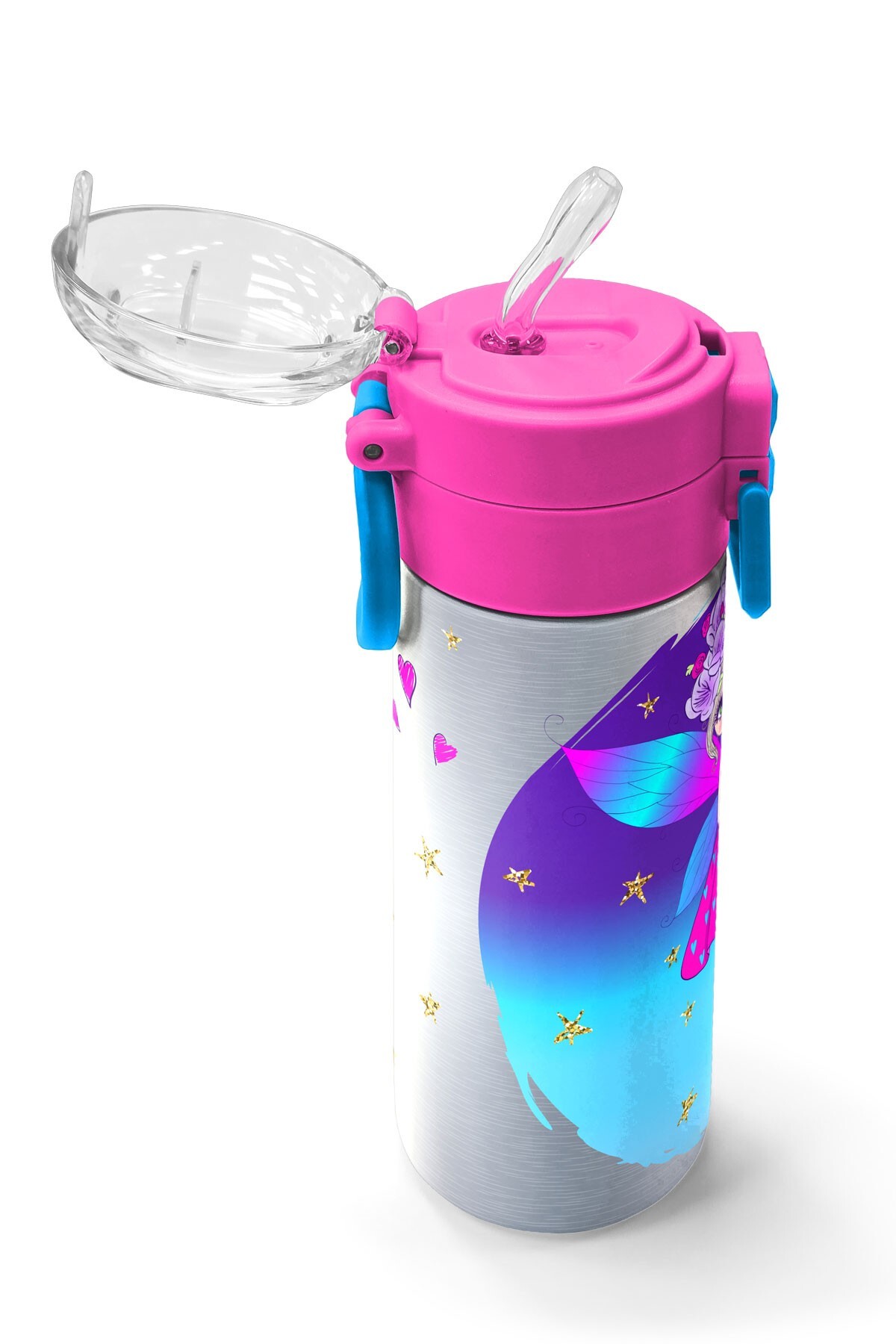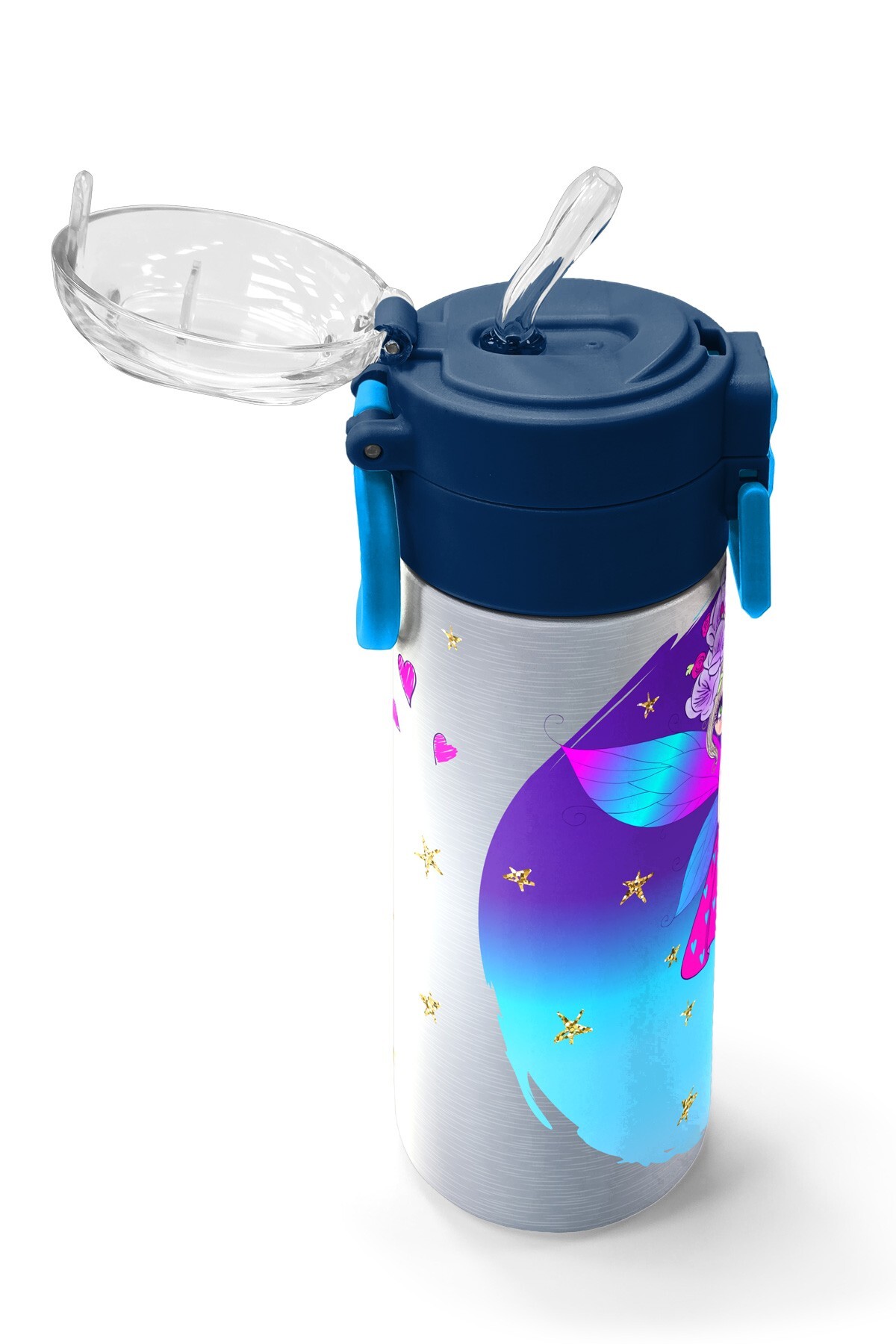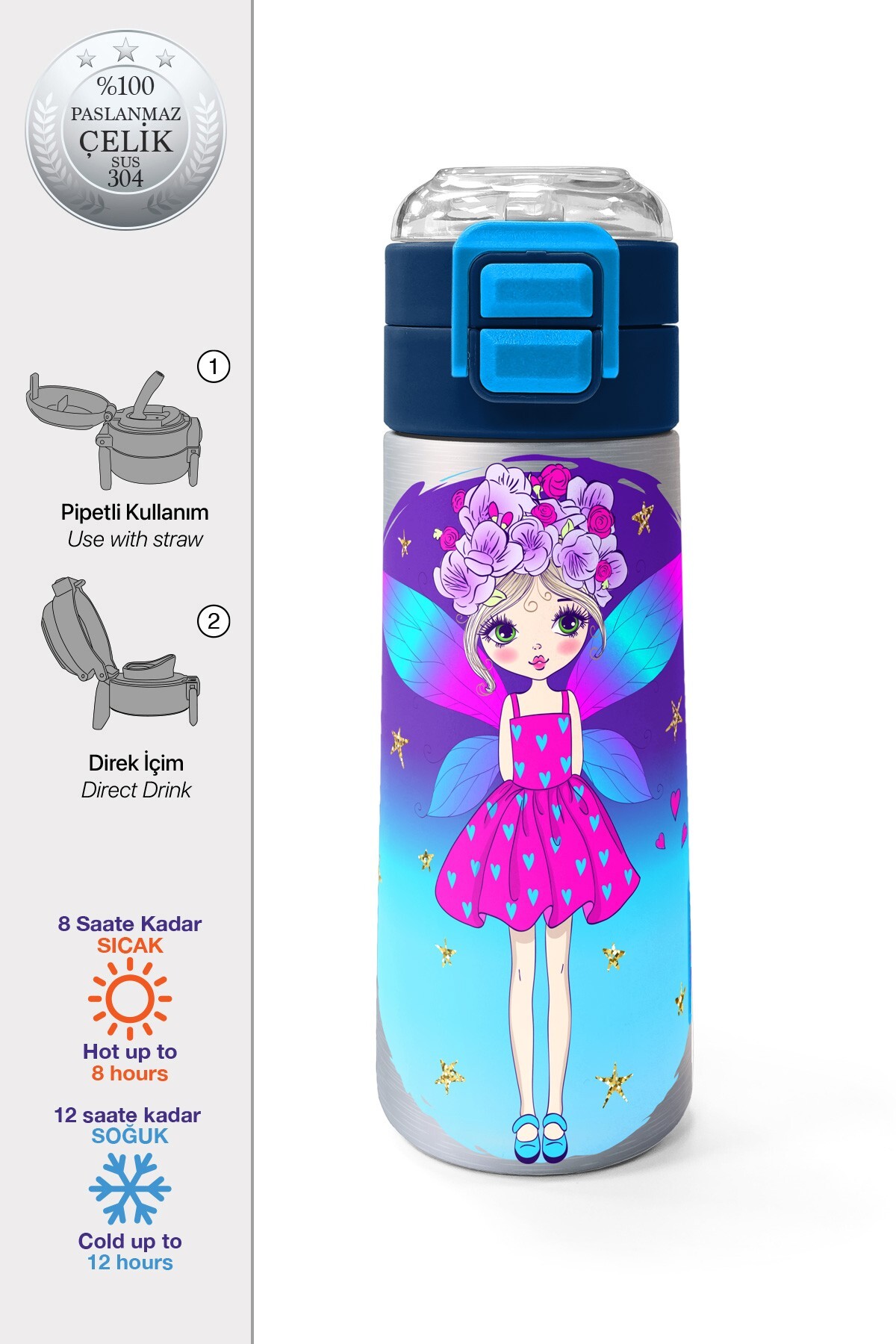 Coral High Kids Pembe Mavi Peri Desenli Pipetli ve Direkt İçim Çelik Termos 500 ml 31803