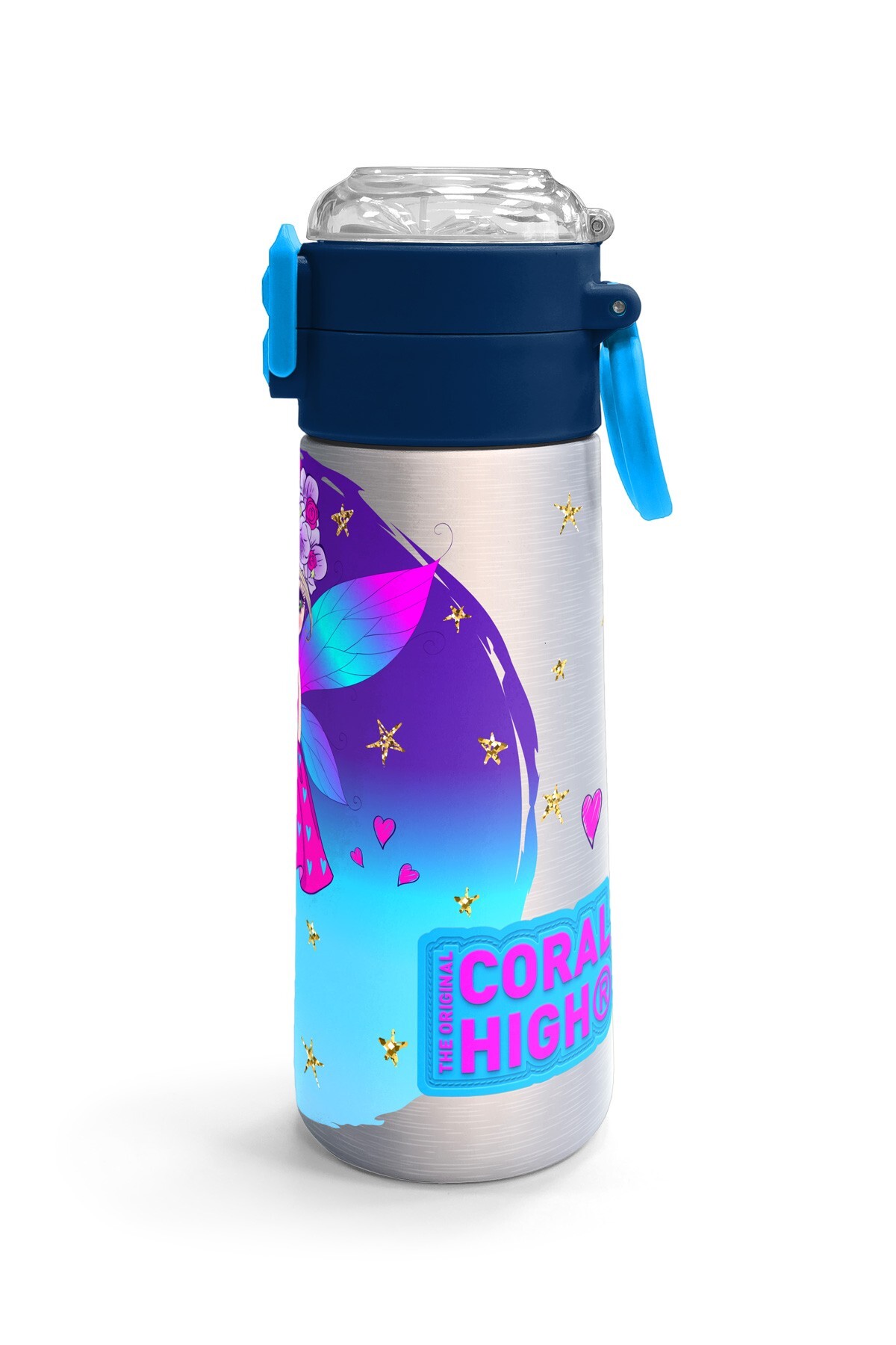 Coral High Kids Pembe Mor Fashion Girl Desenli Pipetli ve Direkt İçim Çelik Termos 500 ml 31956