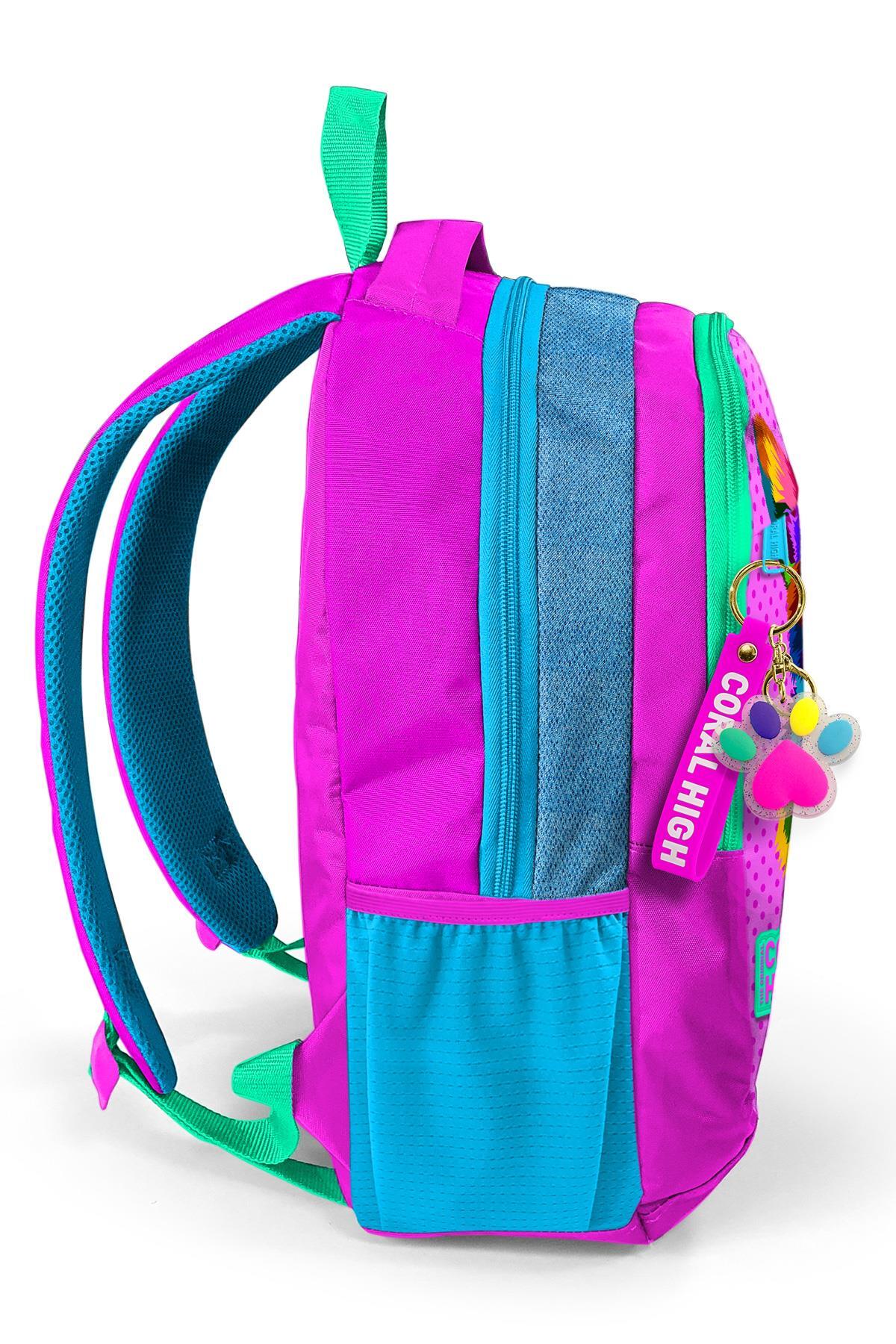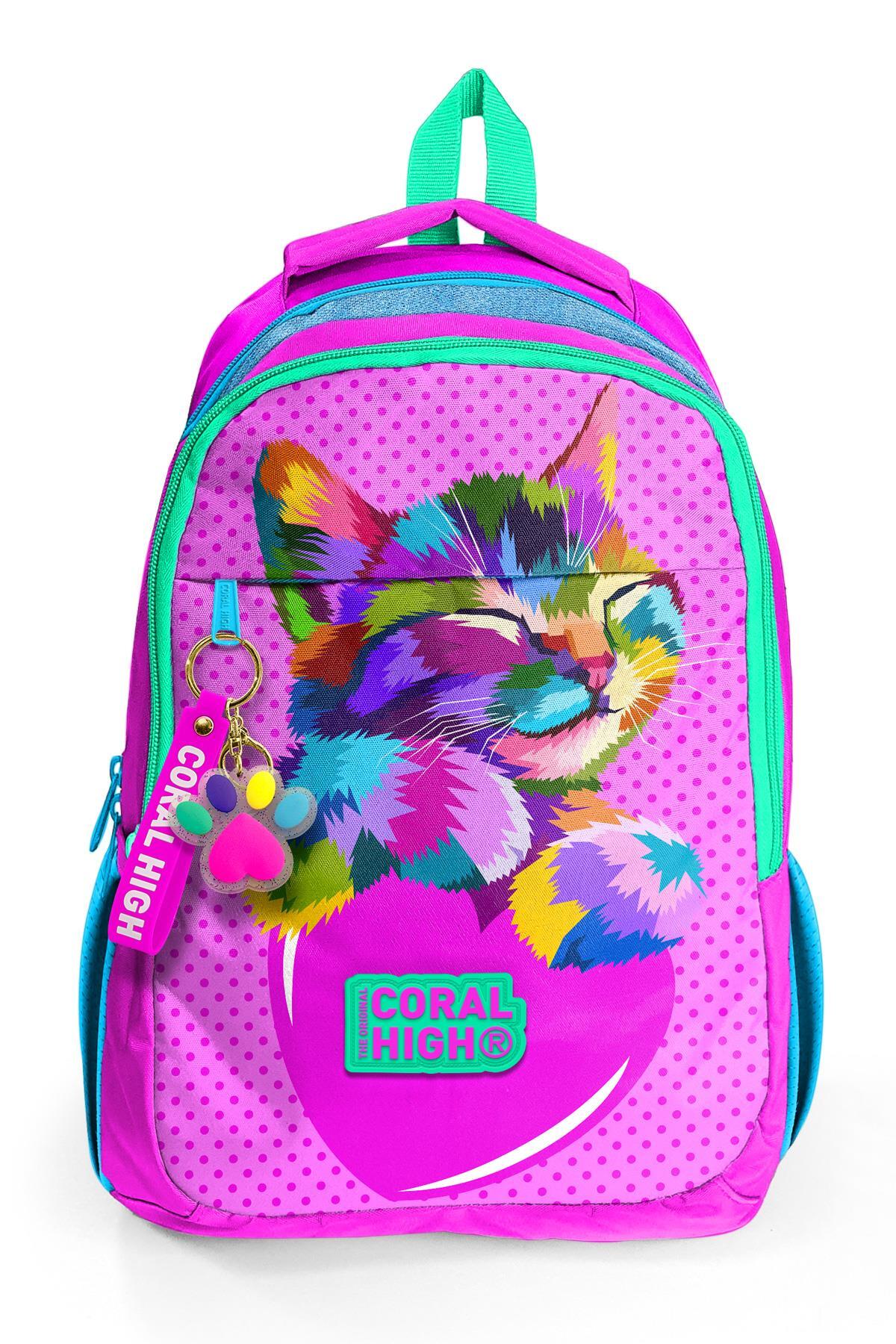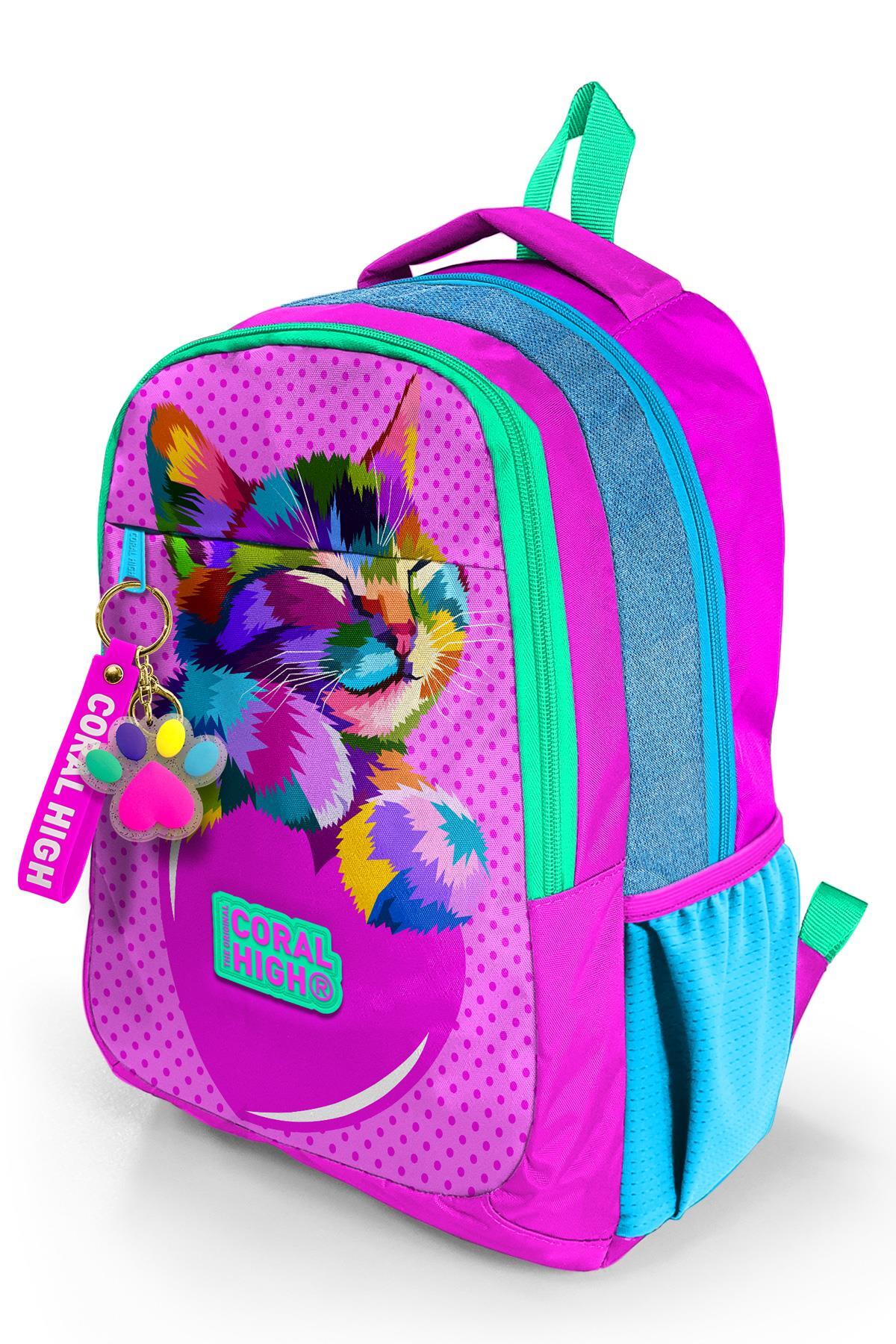 Coral High Kids Pembe Mavi Simli Kedi Desenli Üç Bölmeli Okul Sırt Çantası 14387