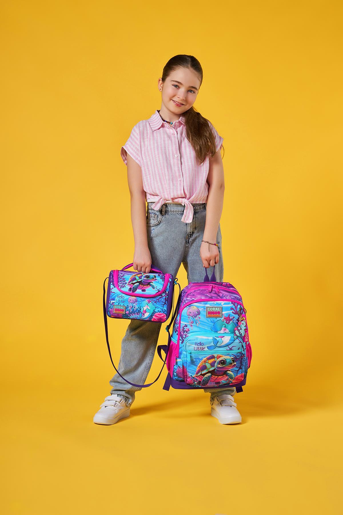 Coral High Kids Pembe Mor Kaplumbağa Desenli 3’lü Okul Çanta Seti SET0123756