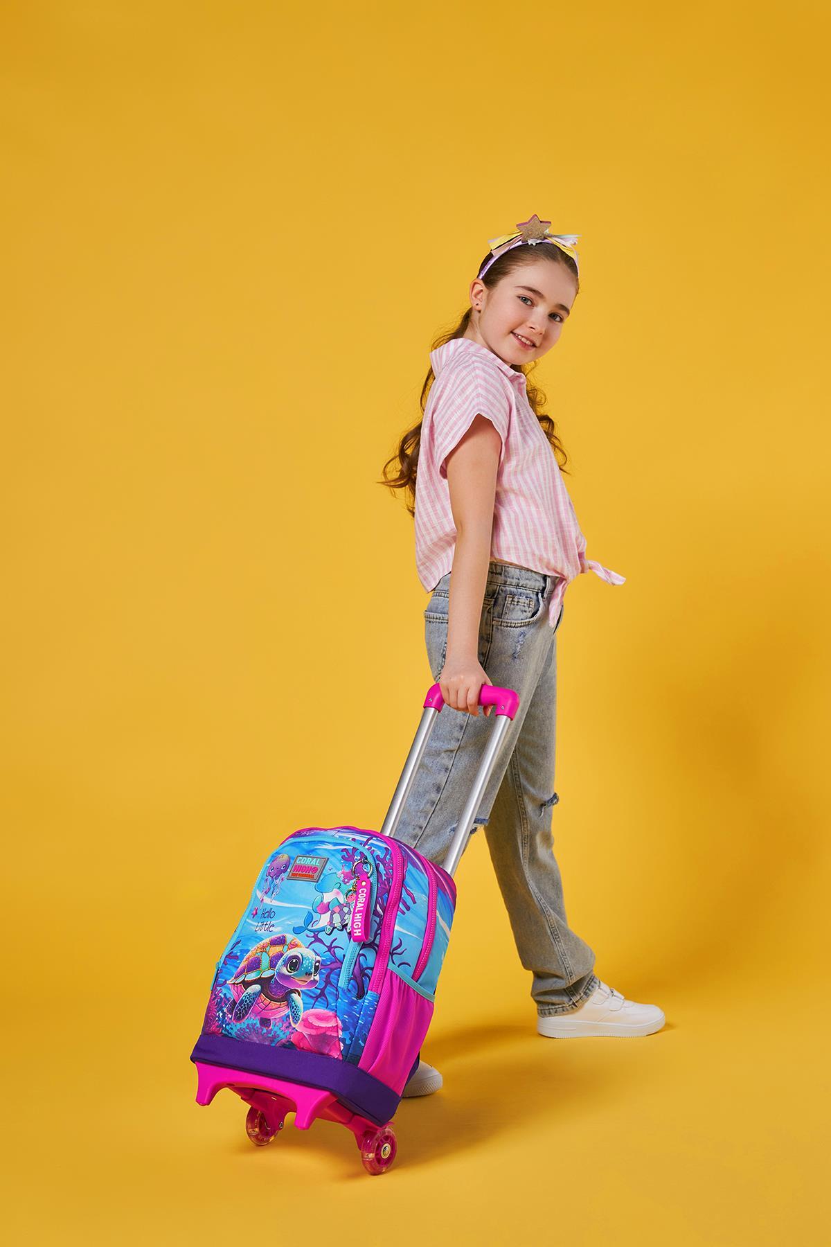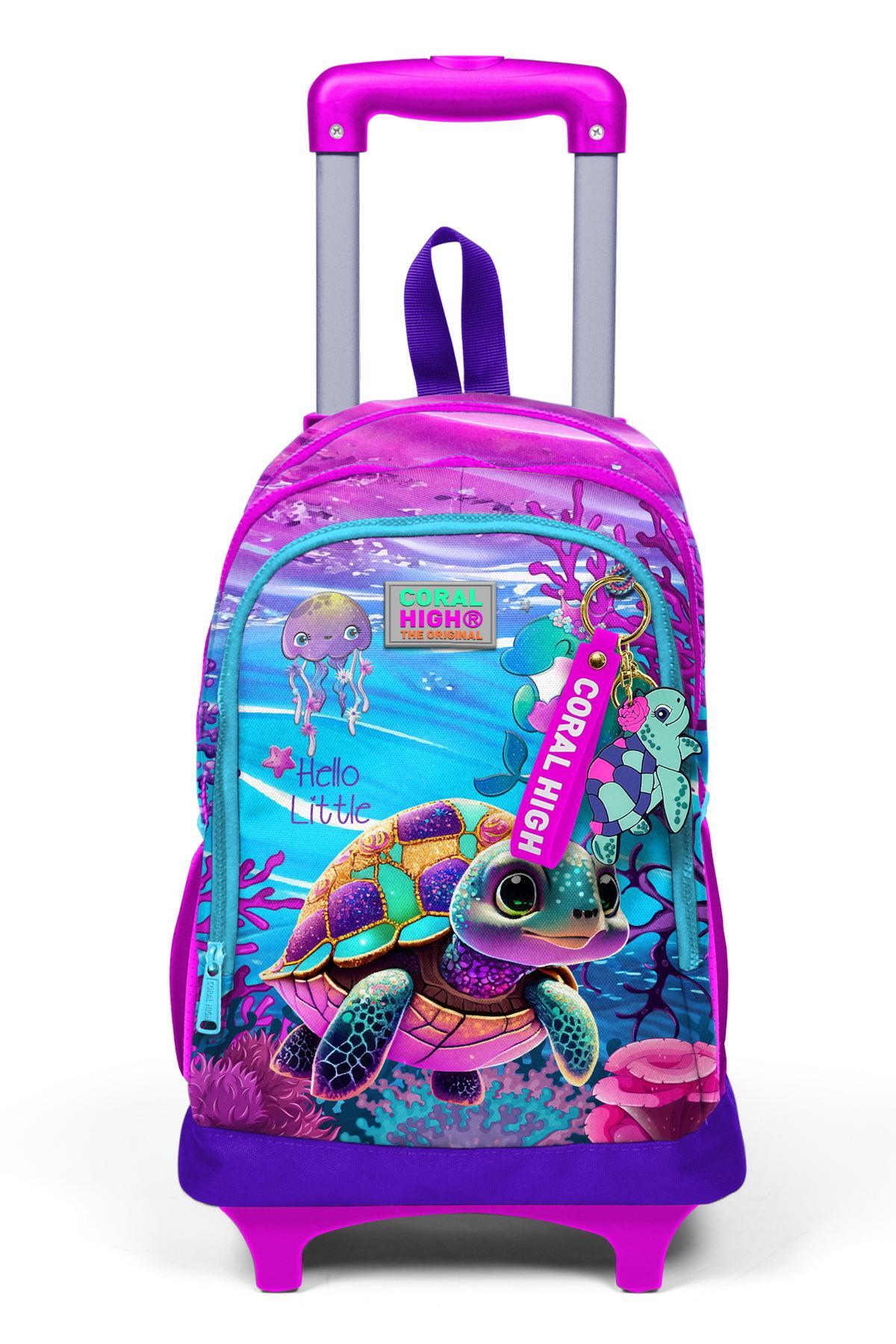 Coral High Kids Pembe Mor Kaplumbağa Desenli Üç Bölmeli Çekçekli Okul Sırt Çantası 23956