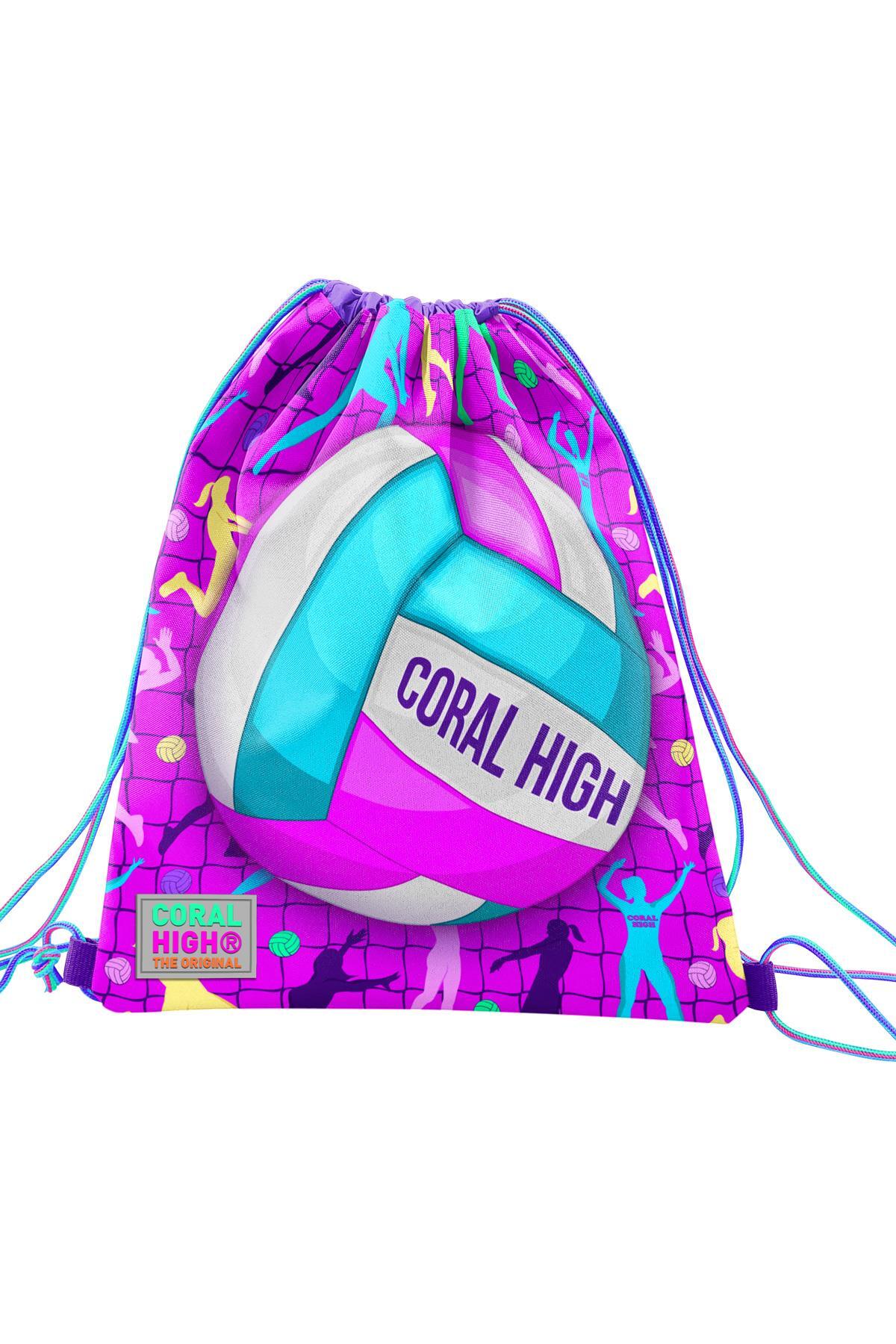 Coral High Kids Pembe Mor Voleybol Desenli İpli Büzgülü Sırt Çantası 12649